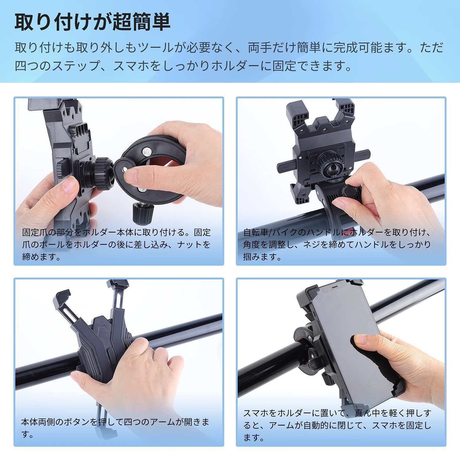 【360度回転ボールマウント】アルミ製ボールマウントと強化樹脂製キャッチ、ナットは極限まで精度を高め、バイクや自転車の振動にもしっかりと姿勢を保つ安定感を実現。