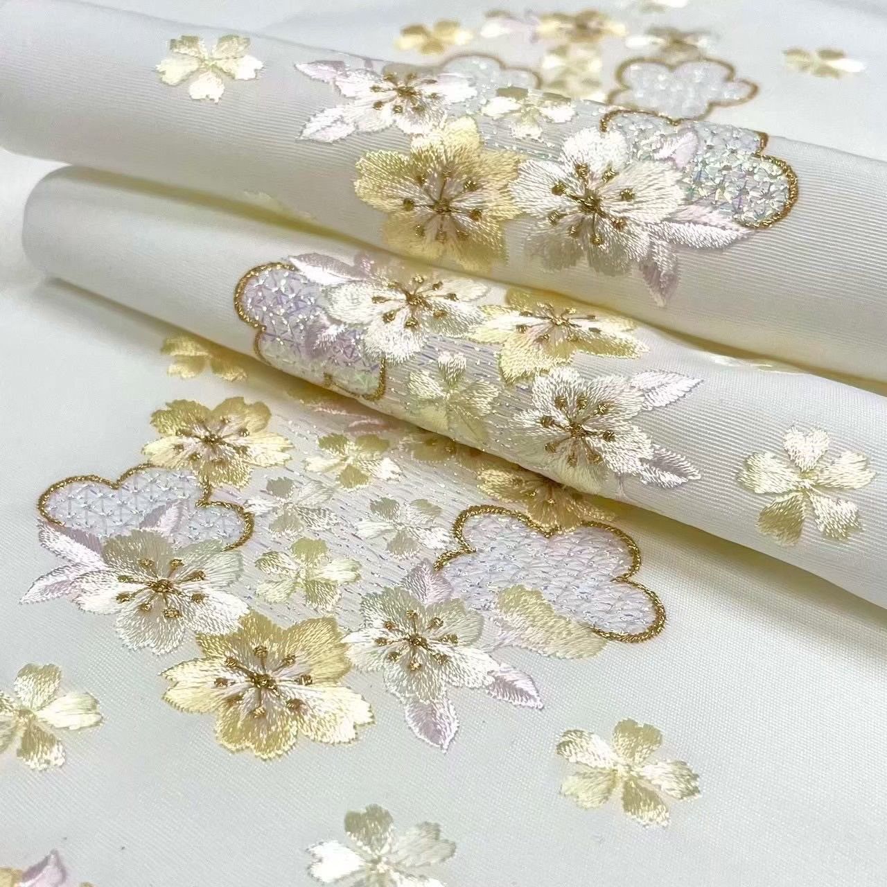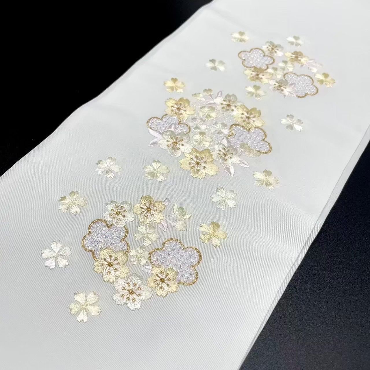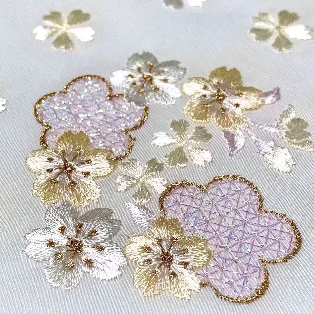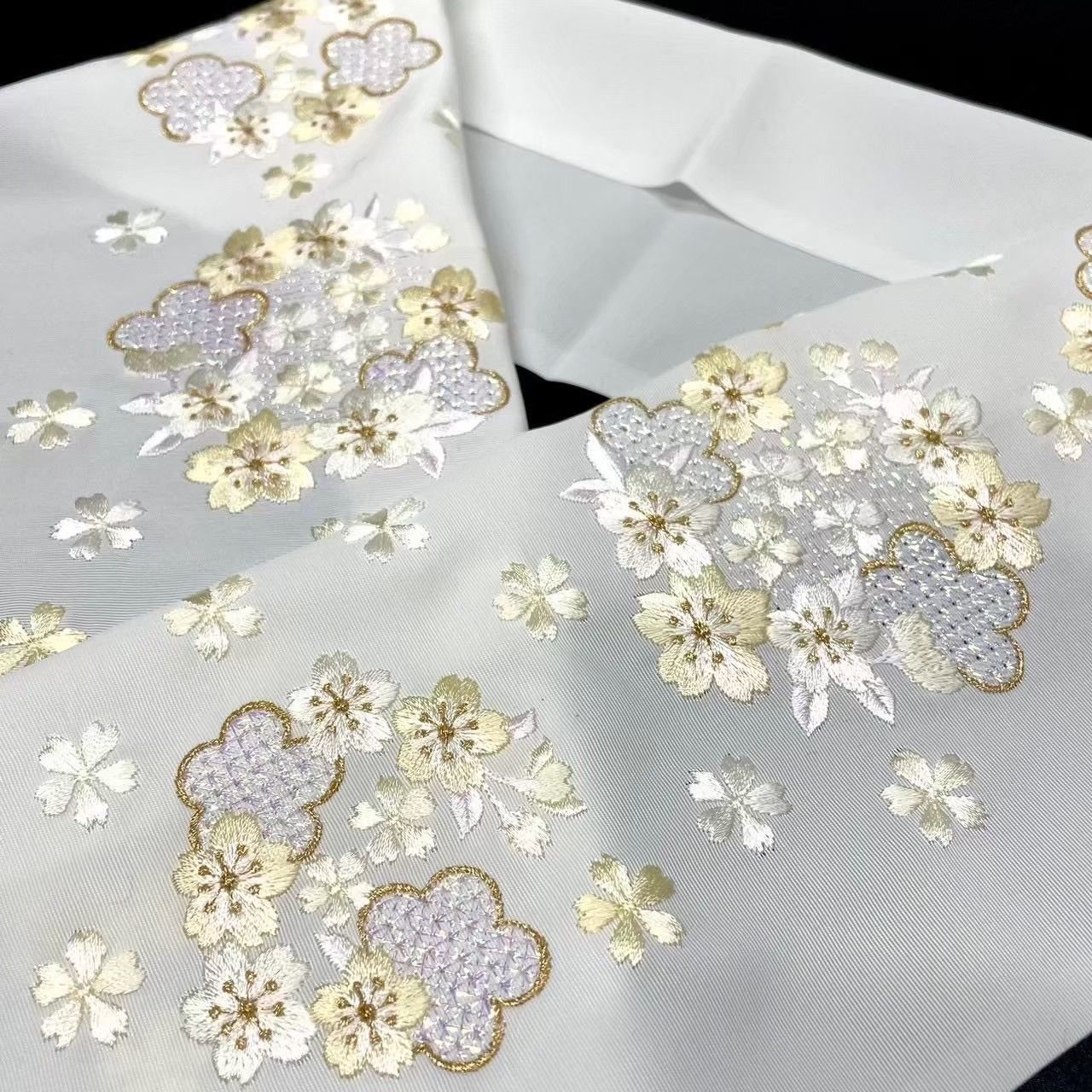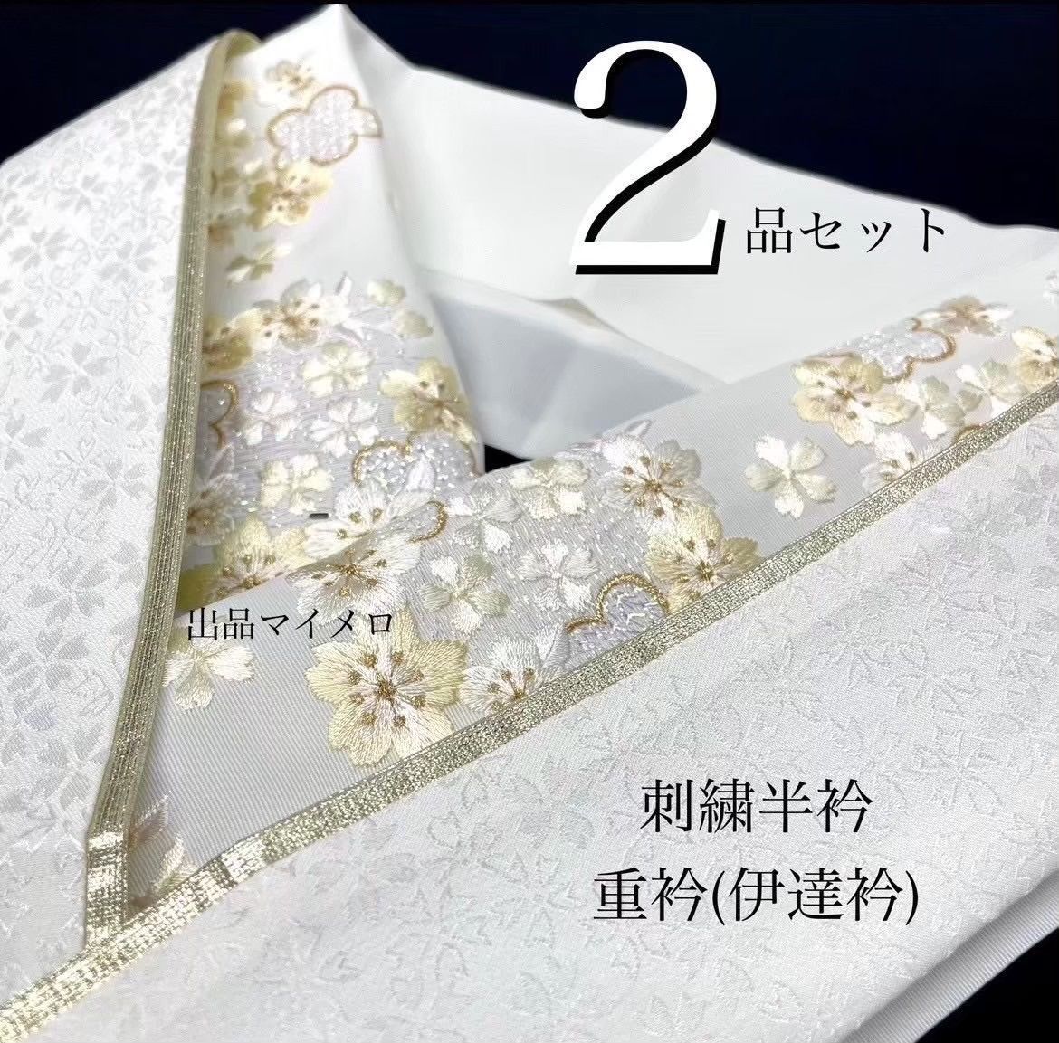 こちら桜シリーズ大人気の刺繍半衿です!刺繍半衿と重衿(伊達衿)の2品出品。正絹のように上手くな光沢となめらかな肌触り、程よくパール感を感じる優しいイメージの刺繍です。