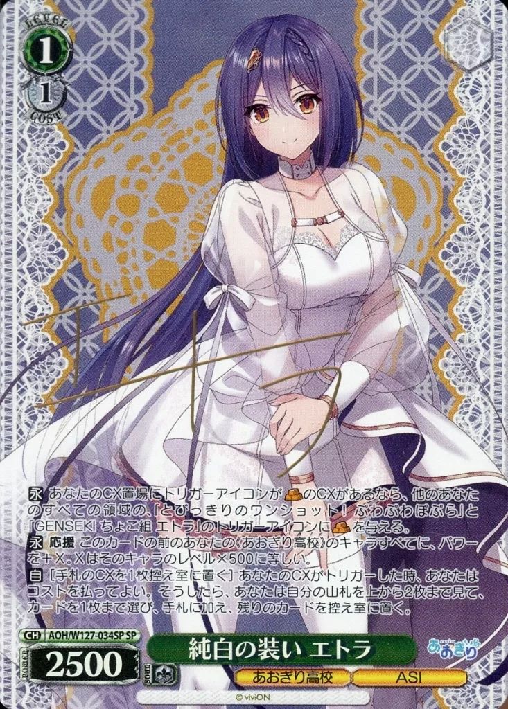 商品名:【中古】ヴァイスシュヴァルツ AOH/W127-034SP[SP]:(ホロ)純白の装い エトラ(金箔押しサイン入り)