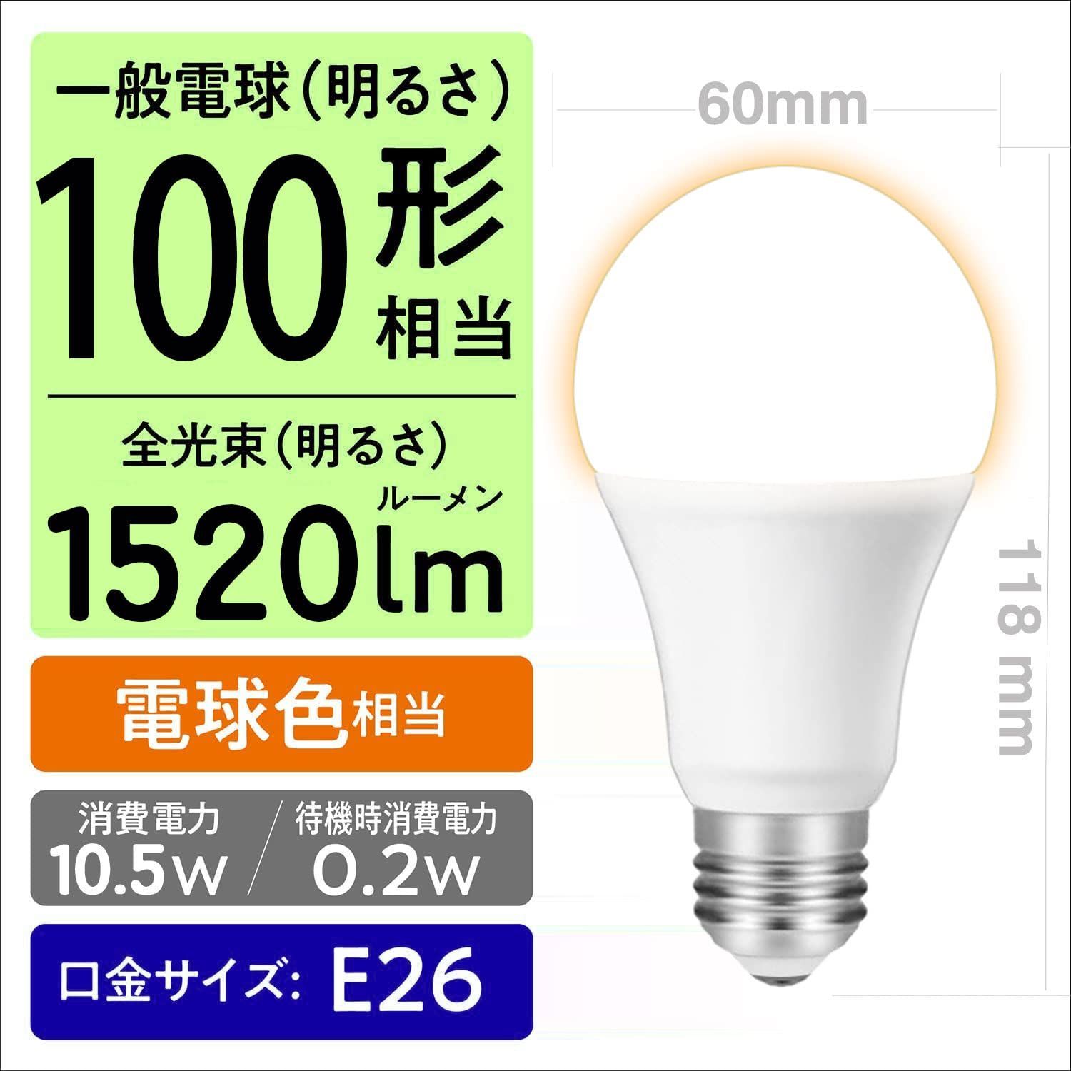 全光束(ランプ単体の明るさ):電球100形相当 1520 lm 、高輝度、約30%省エネ