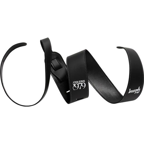 上質なステッチが施された、洗練されたデザインのレザーストラップ。長さ調整が可能で、GibsonおよびAdam Jones 1979のロゴをあしらった、ギターに最適なアクセサリーです。
