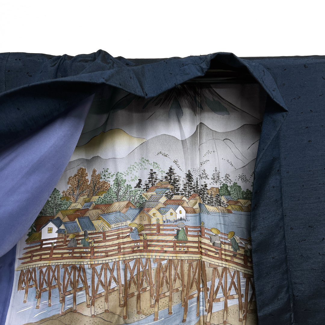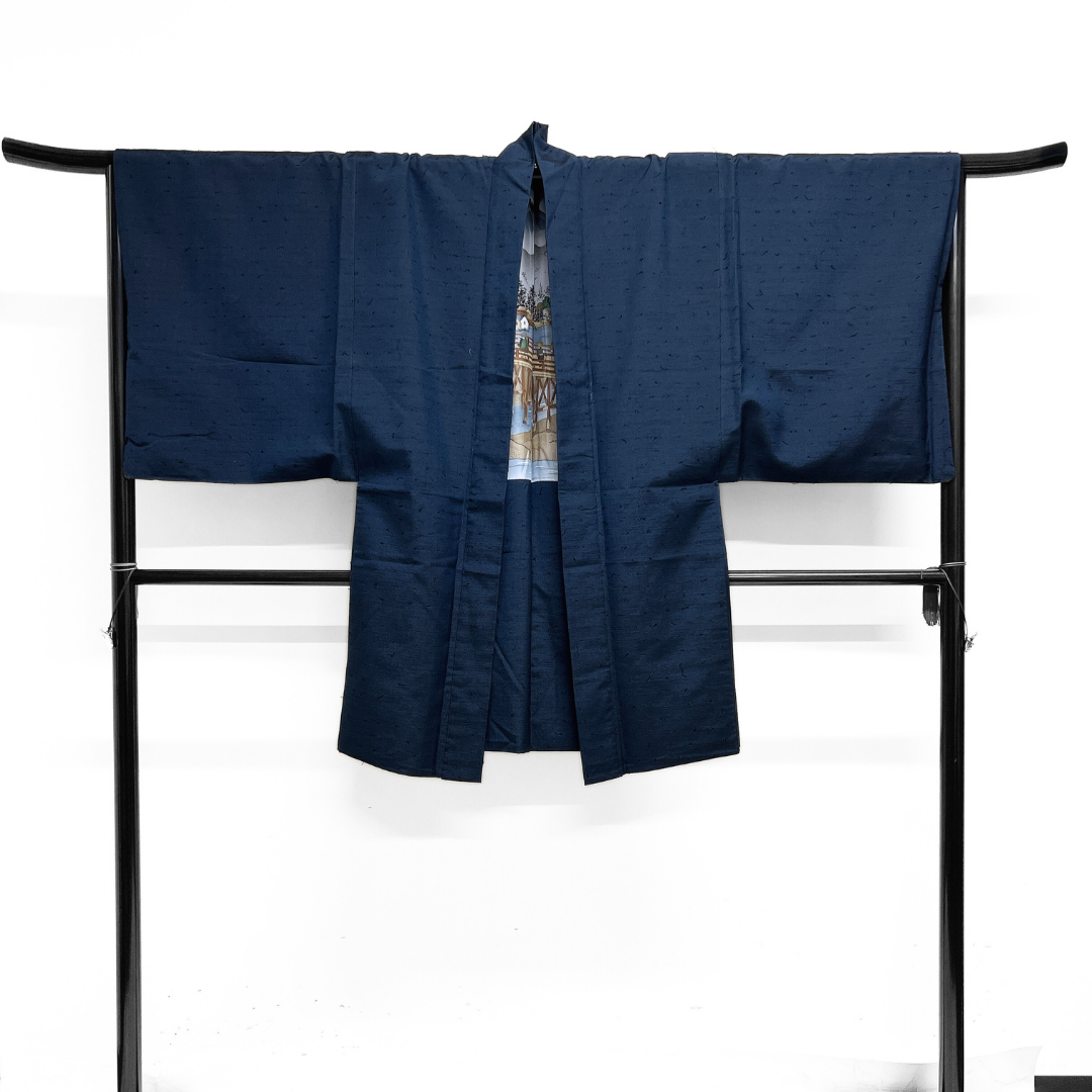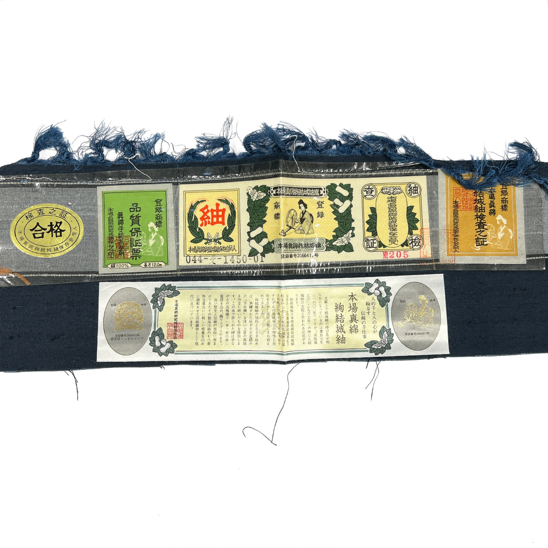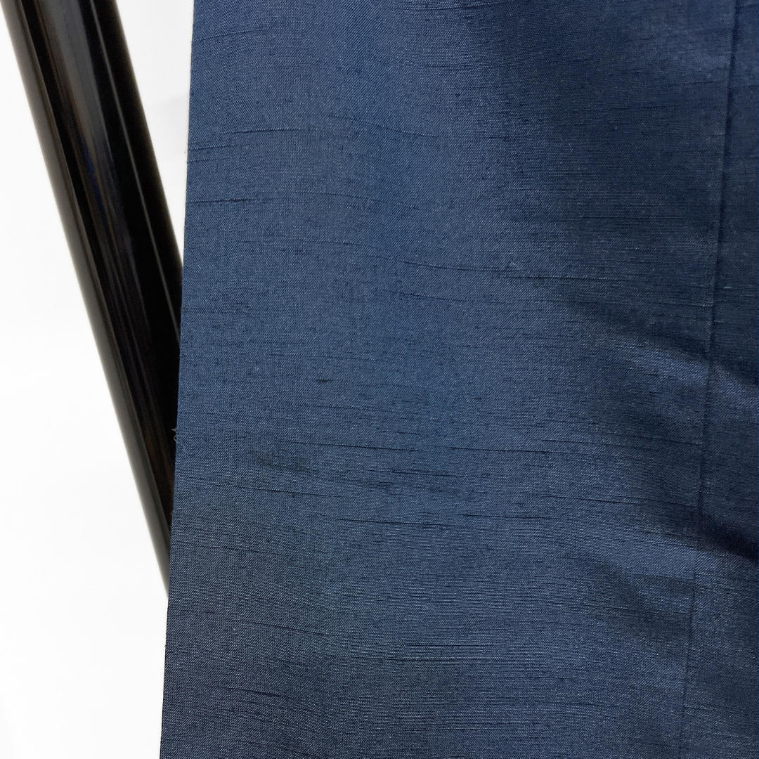 本場真綿絢結城紬で織られた深いネイビーのお色味がお洒落な雰囲気の一着です。