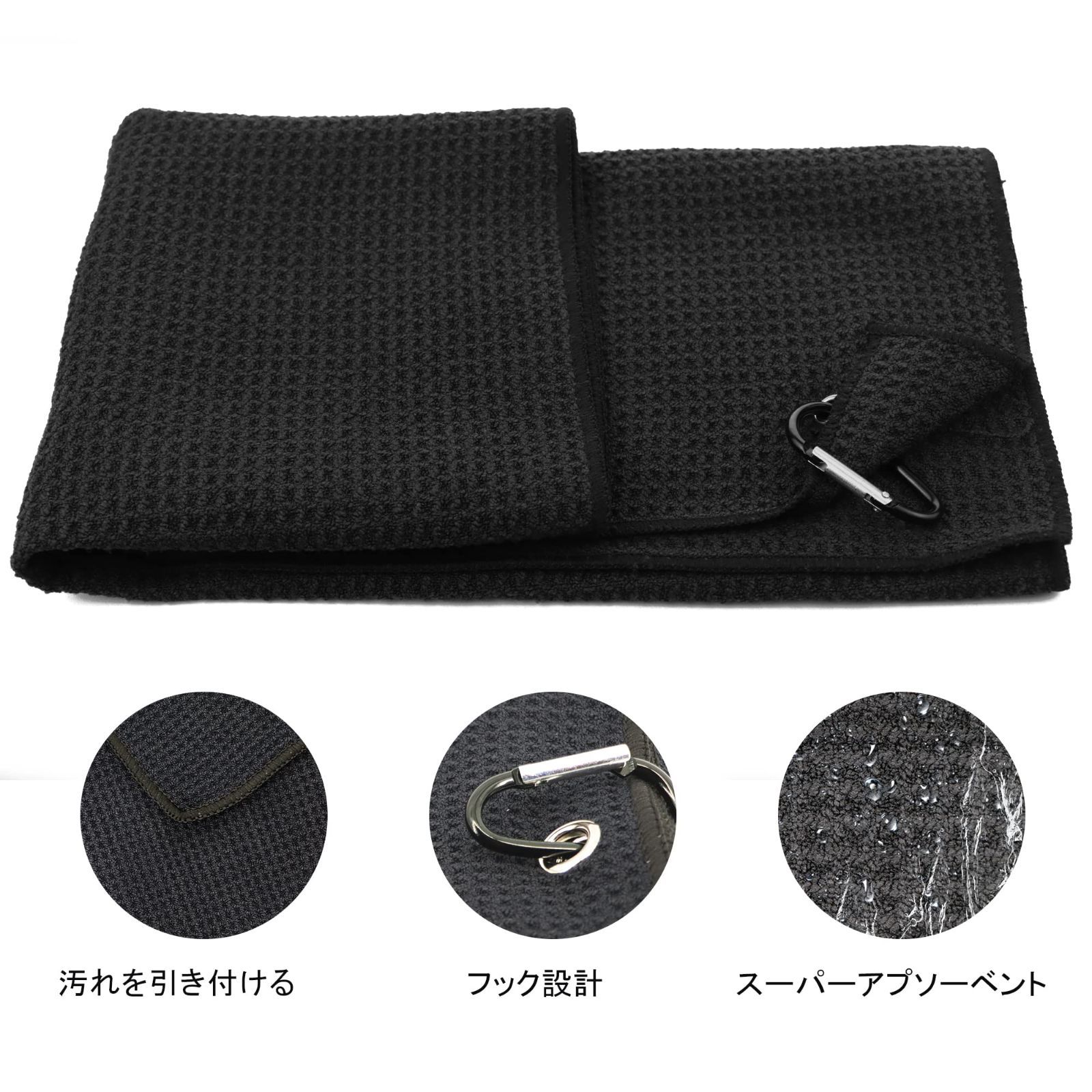 【ゴルフタオル】タオルはマイクロファイバー素材でできており、吸水性が低く、綿生地よりも洗濯や乾燥が簡単で、ゴルフバッグの持ち運びも簡単です。