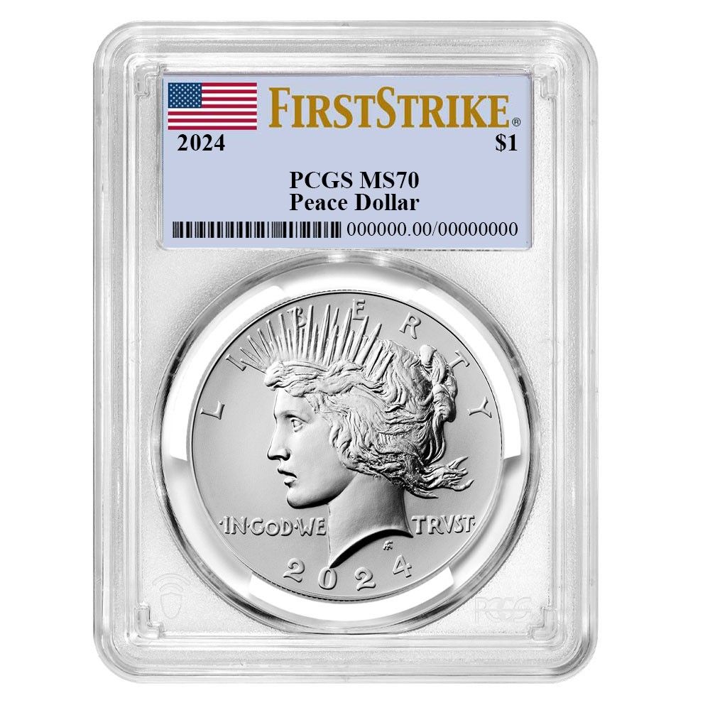 2024年 1ドル ピースシルバードル PCGS MS70 FS フラッグラベル2024 $1 Peace Silver Dollar PCGS MS70 FS Flag Label
