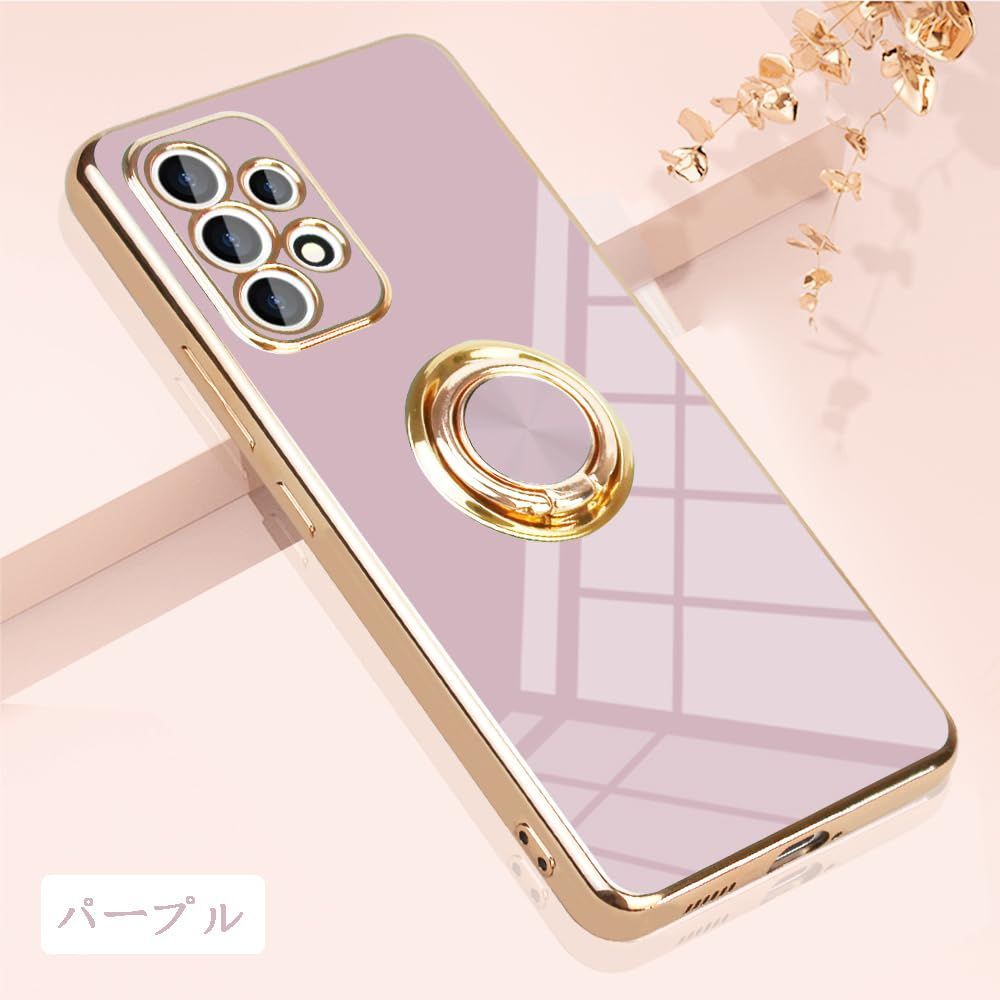 Galaxy A53 5G 用 ケース Samsung SC-53C / SCG15 ケース リング付き メッキ加工 レンズ保護 tpu ソフト ストラップホール付き 耐衝撃 スリム おしゃれ スマホケース 携帯カバー ギャラクシーA53 用 カバー (Galaxy A53 5G パープル)