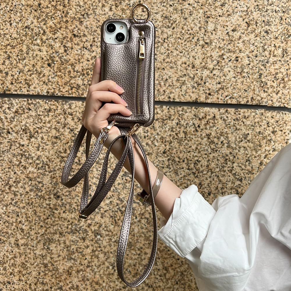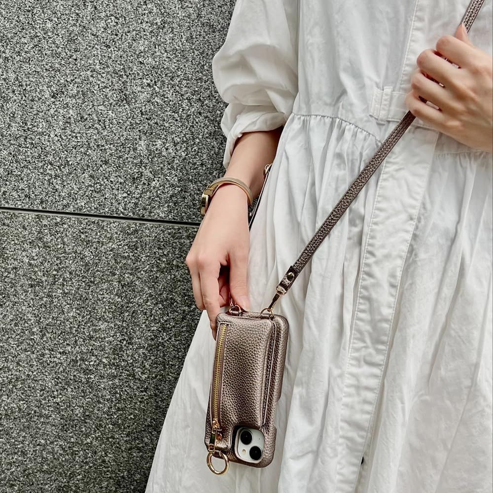 デジタルアルキミスト iPhone 15 ケース オープンレザーケース ショルダーストラップ ポーチ付き m1n1 ブロンズ