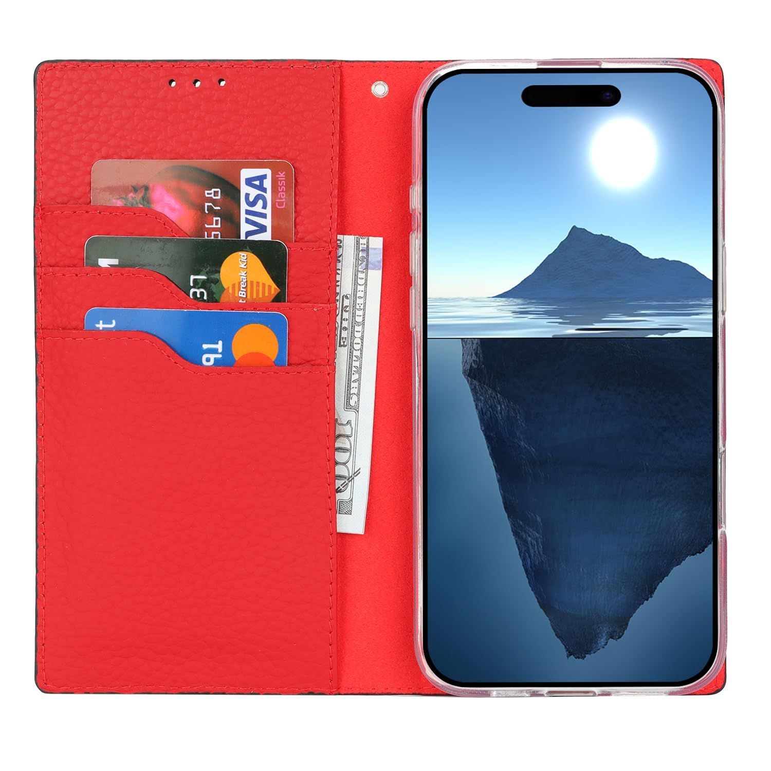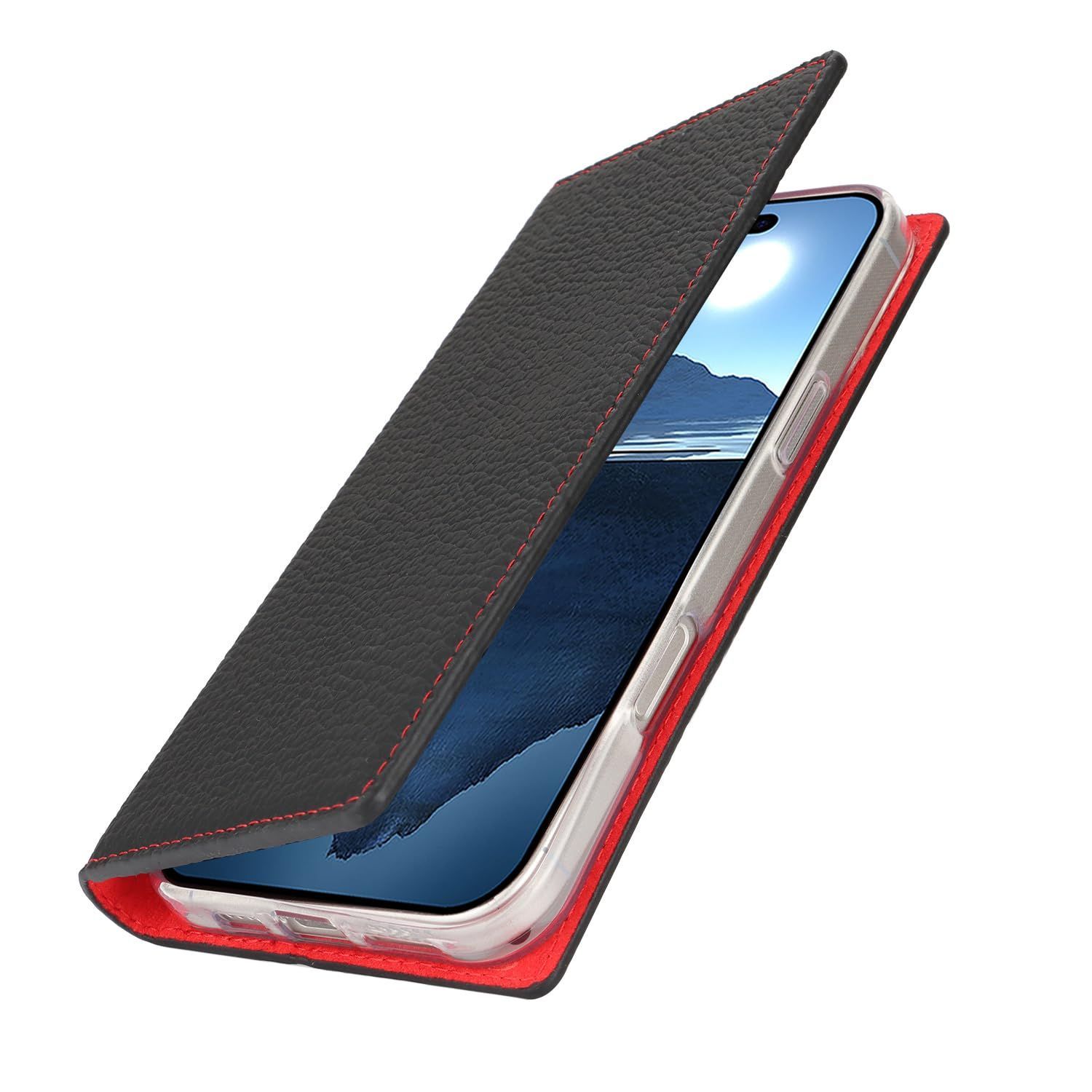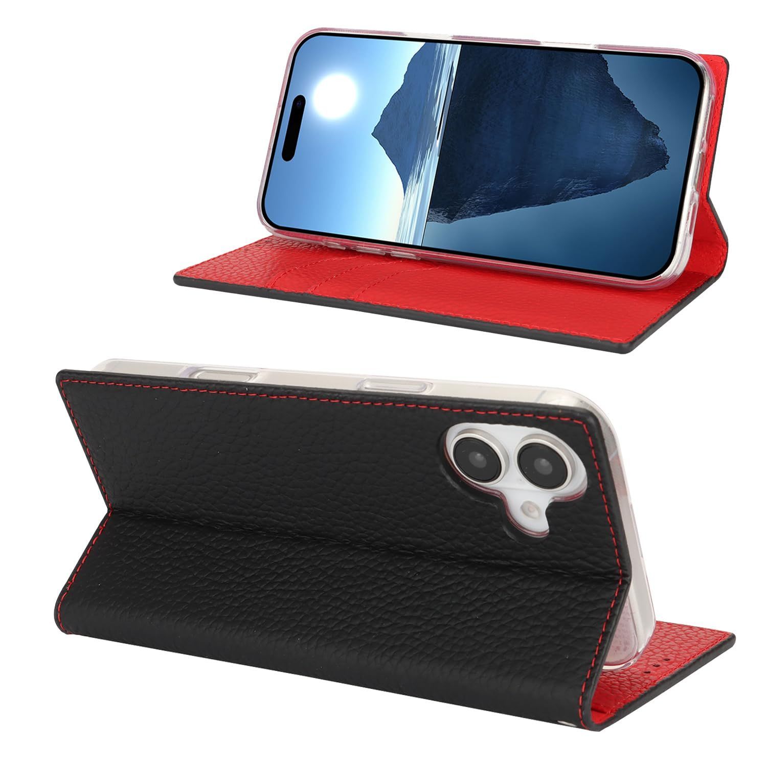 Eastwave アイフォン For iPhone 16 ケース 本革 牛革 For iPhone 16 ケース 手帳型 For iPhone16 カバー 手帳 本革 柔らかい 本皮 スプラットホール付き スプラット同梱 内蔵マグネット- ブラック