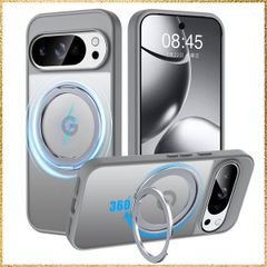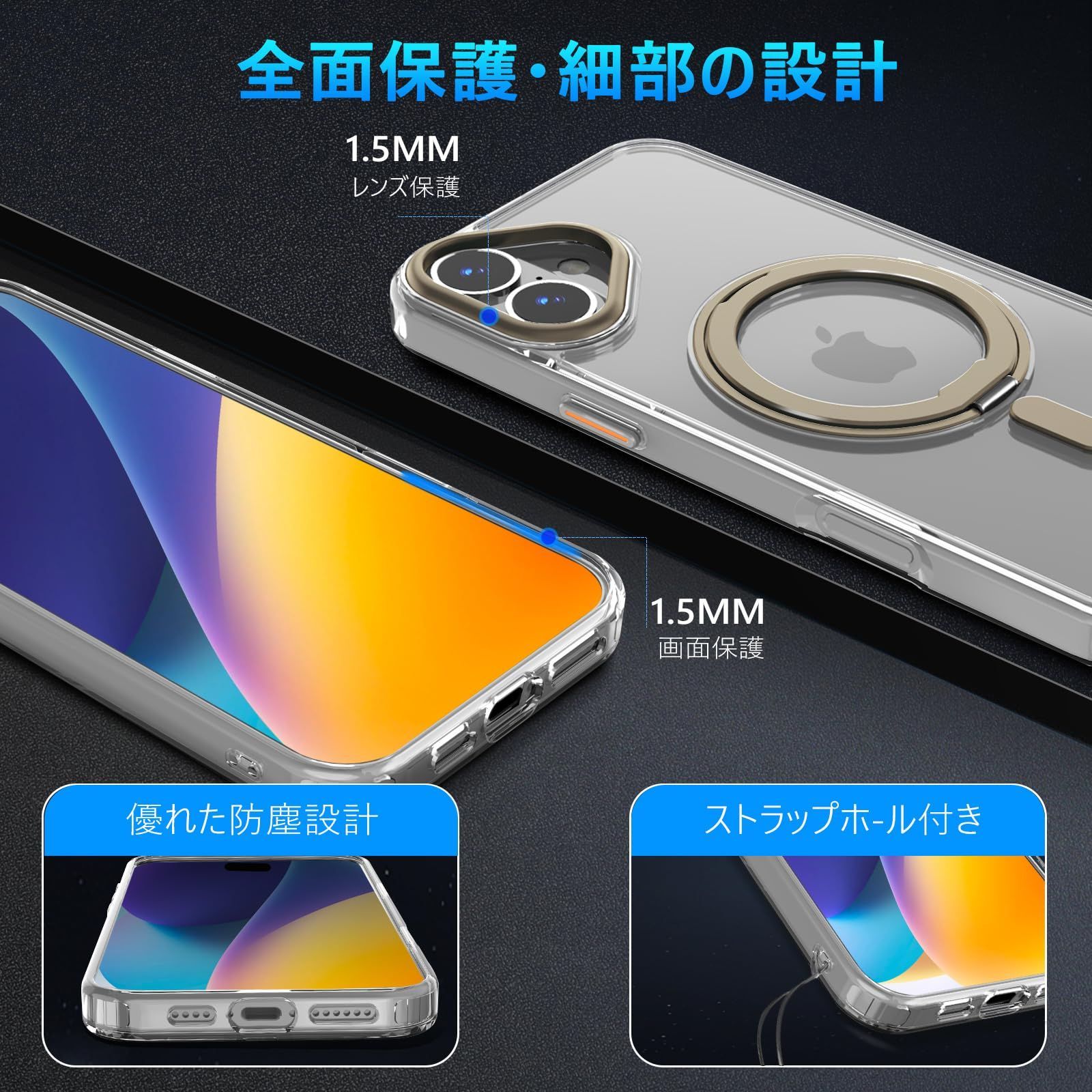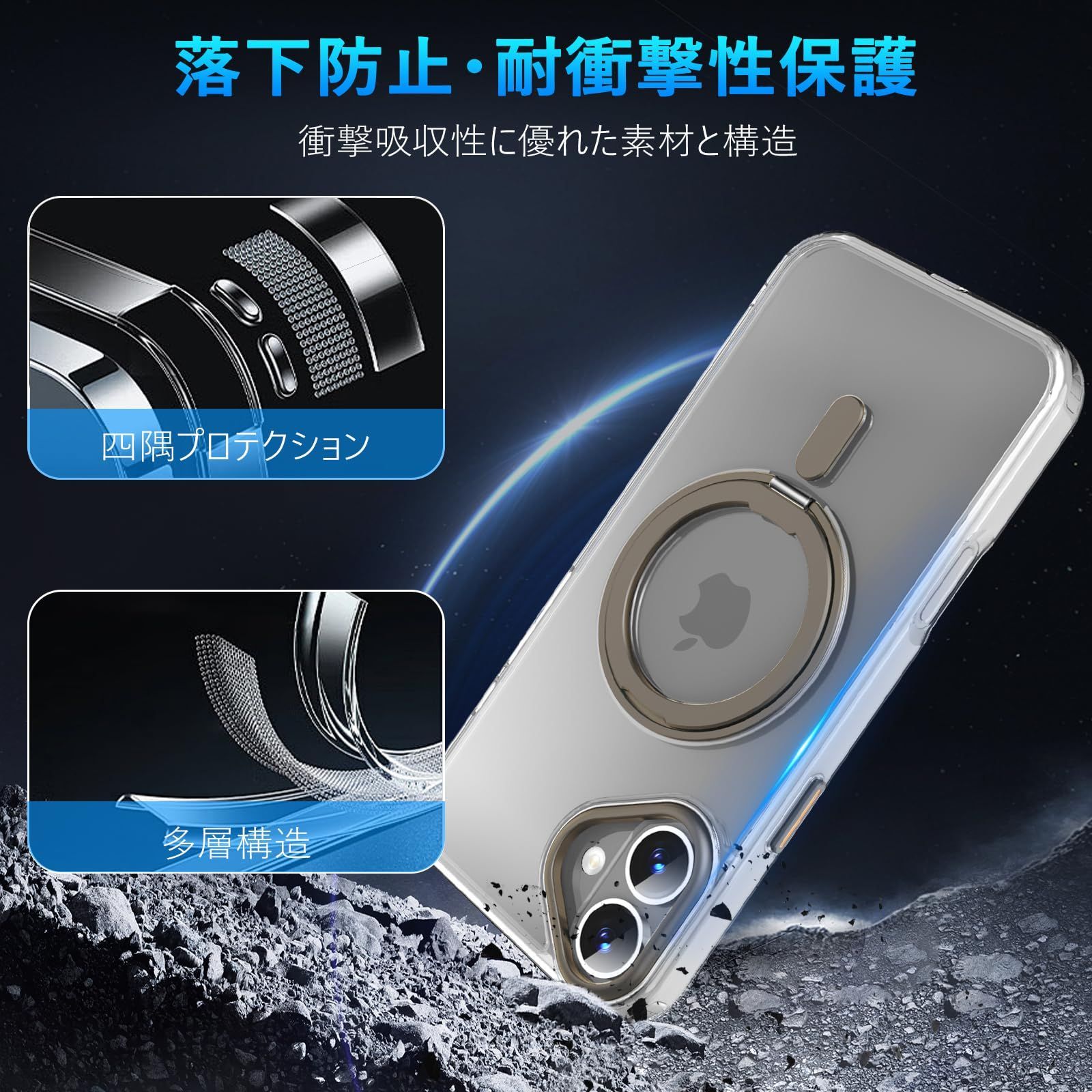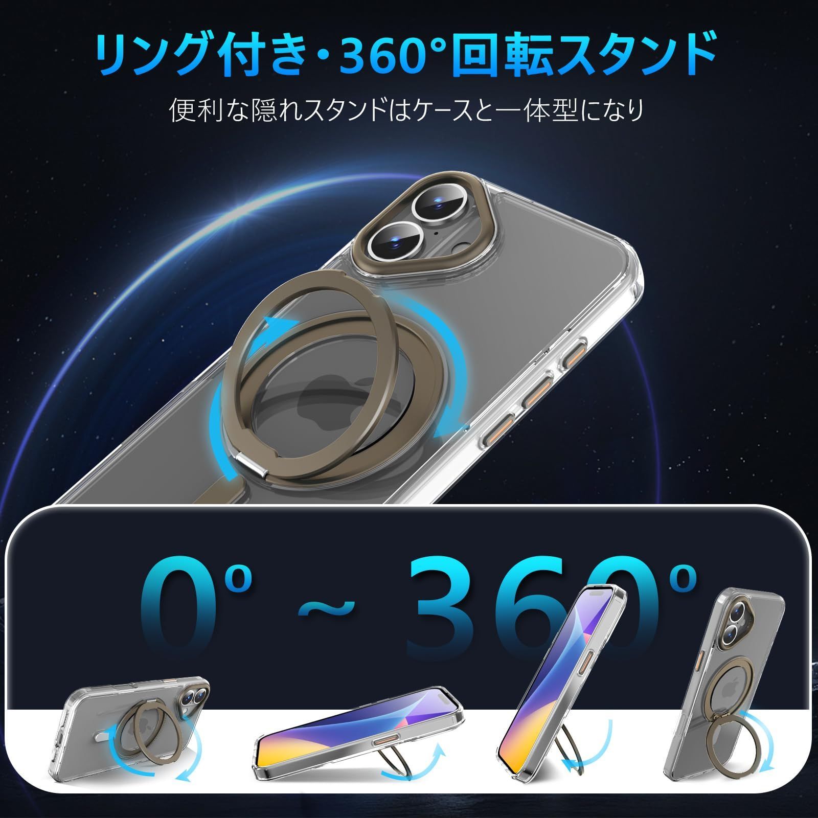 QUEASON【iPhone 16 用 MagSafe対応 ケース】360°回転スタンド ワイヤレス充電対応 あいふおん16 用 ケース リング付き 米軍MIL規格 スマホケース iphone 16 用 超強磁力 落下防止 アイフォン16 用 スマホケース 耐衝撃 半透明 防指紋(透明+デザートチタニウム)