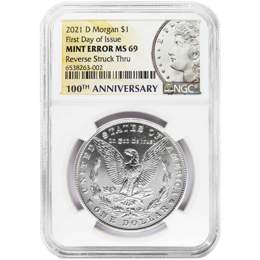 2021D 1ドル モルガン銀貨 NGC MS69 FDI ミント エラーリバースストラックスルー2021D $1 Morgan Silver Dollar NGC MS69 FDI Mint Error Reverse Struck Thru
