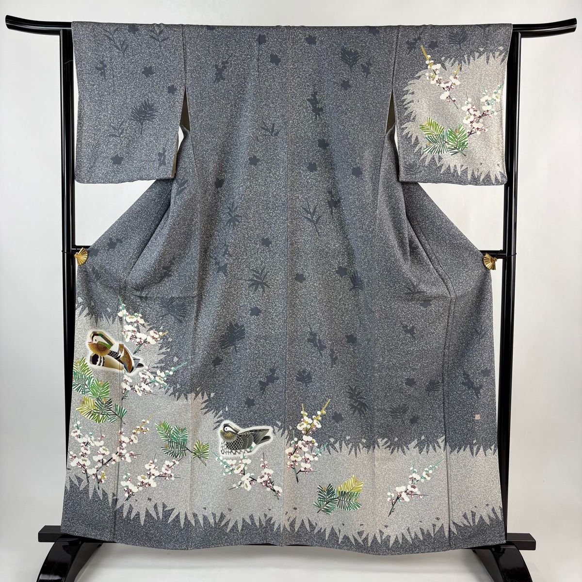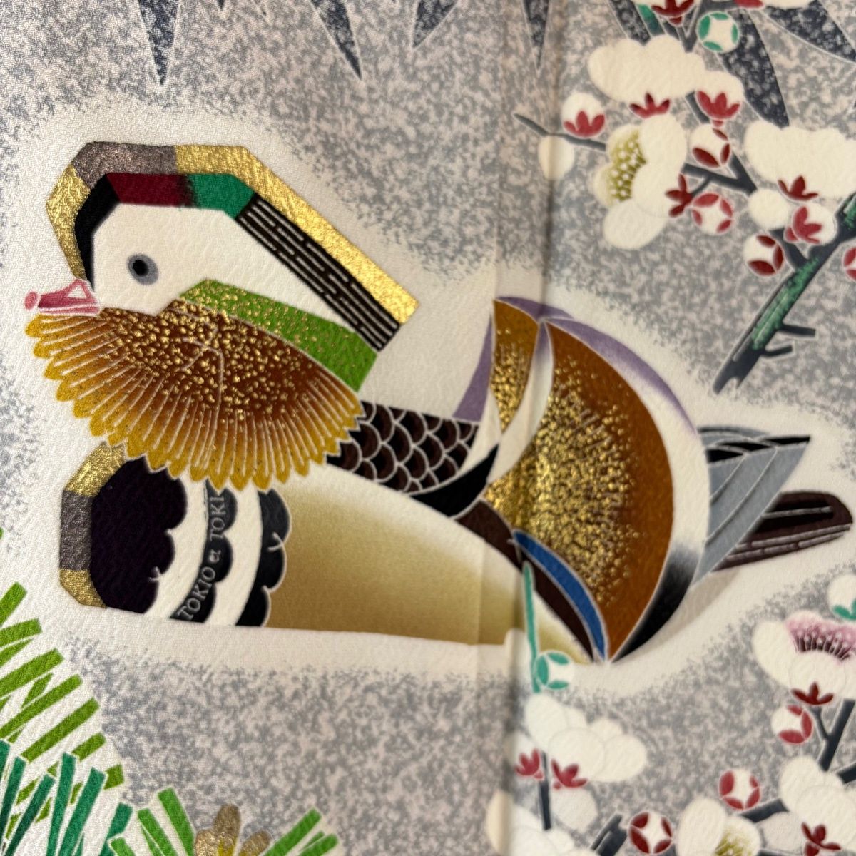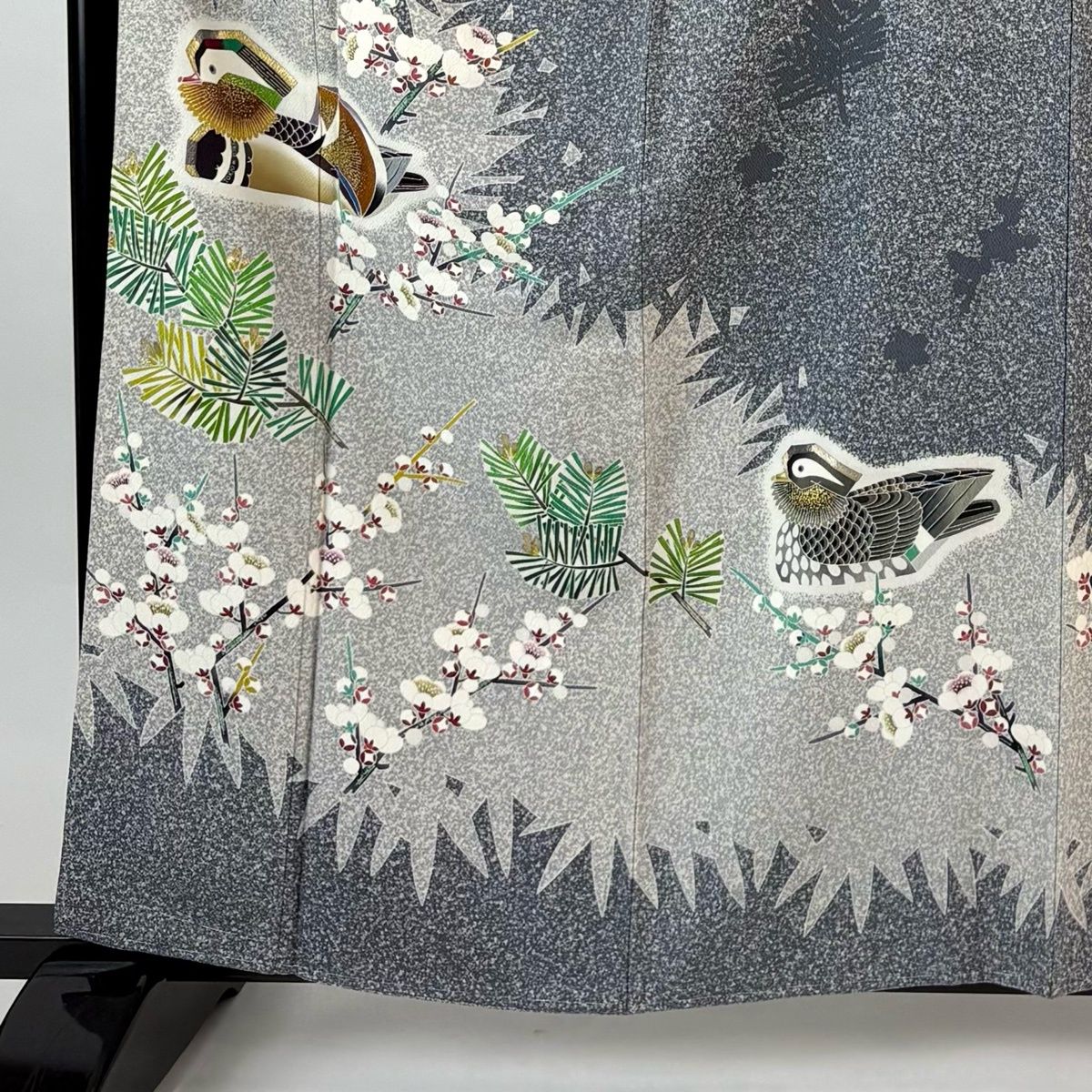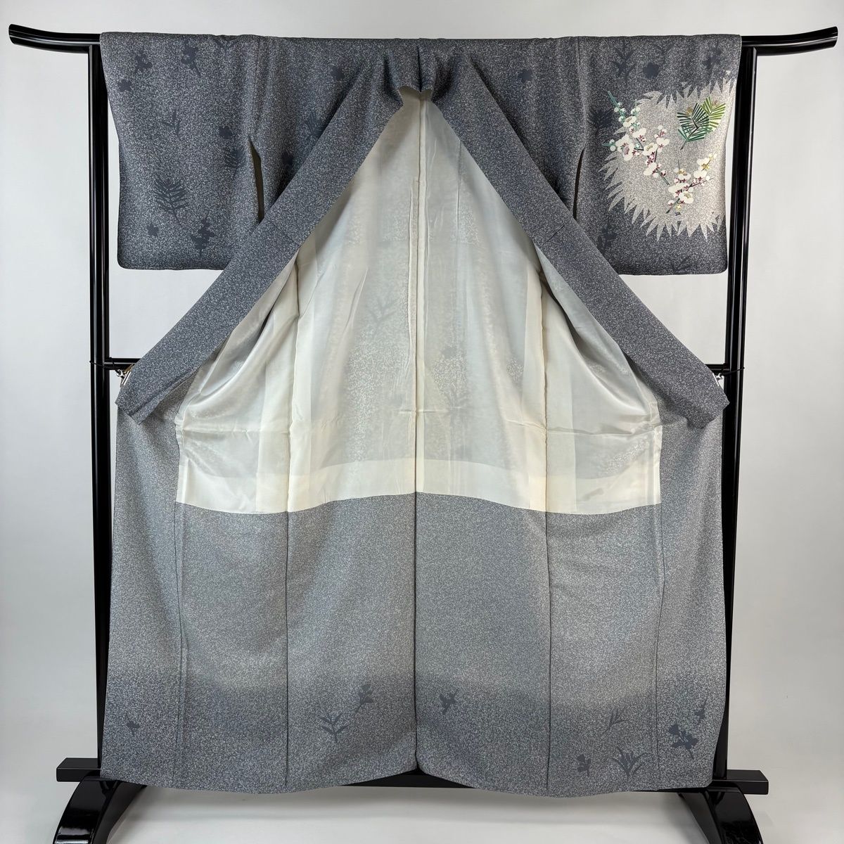 表地所々にヤケ、両衿先にシワ、表地所々に金彩の変色がございます。