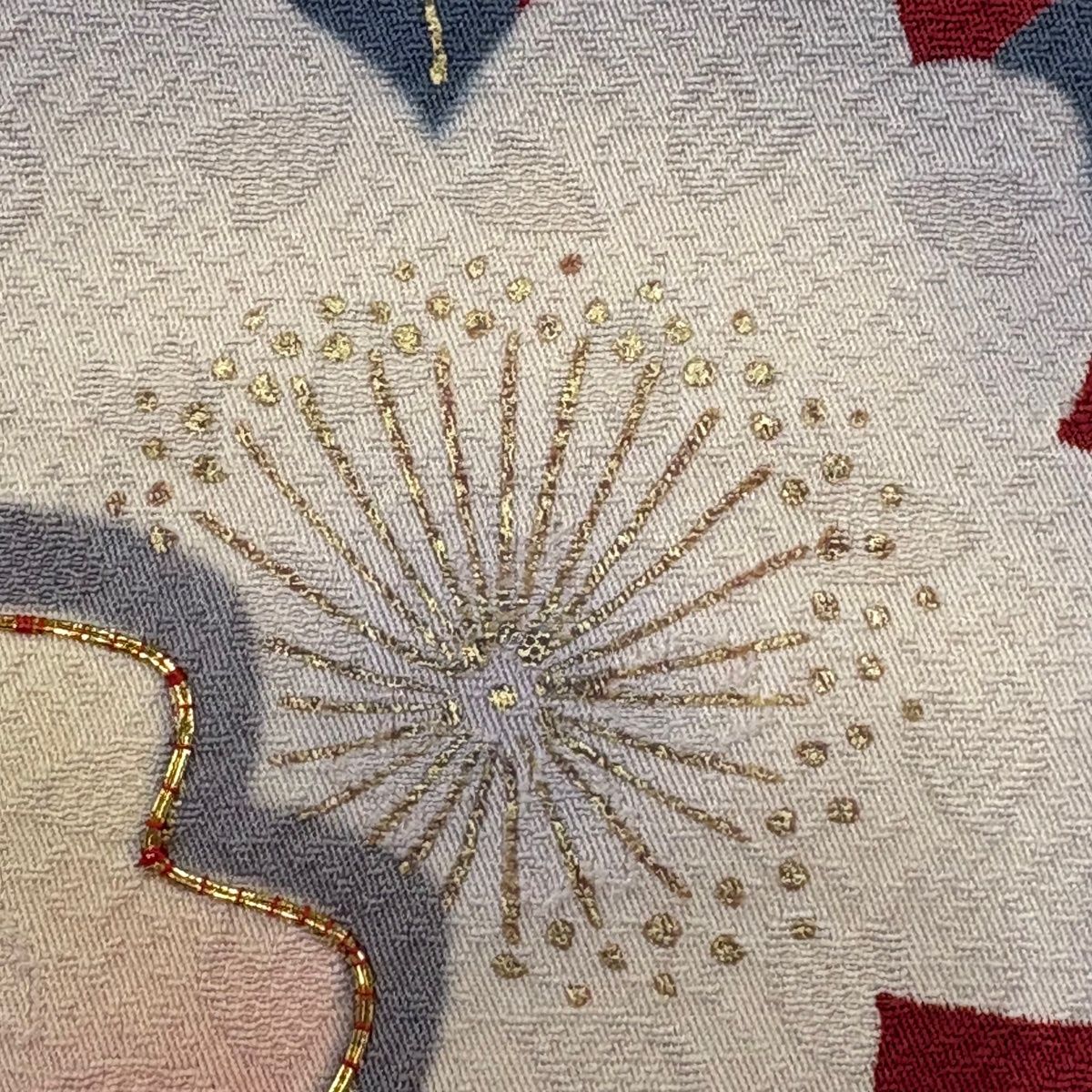 左前袖に汚れ、両袖前後にシワ、表地所々に金彩の剥がれ、表地所々に金彩の変色がございます。