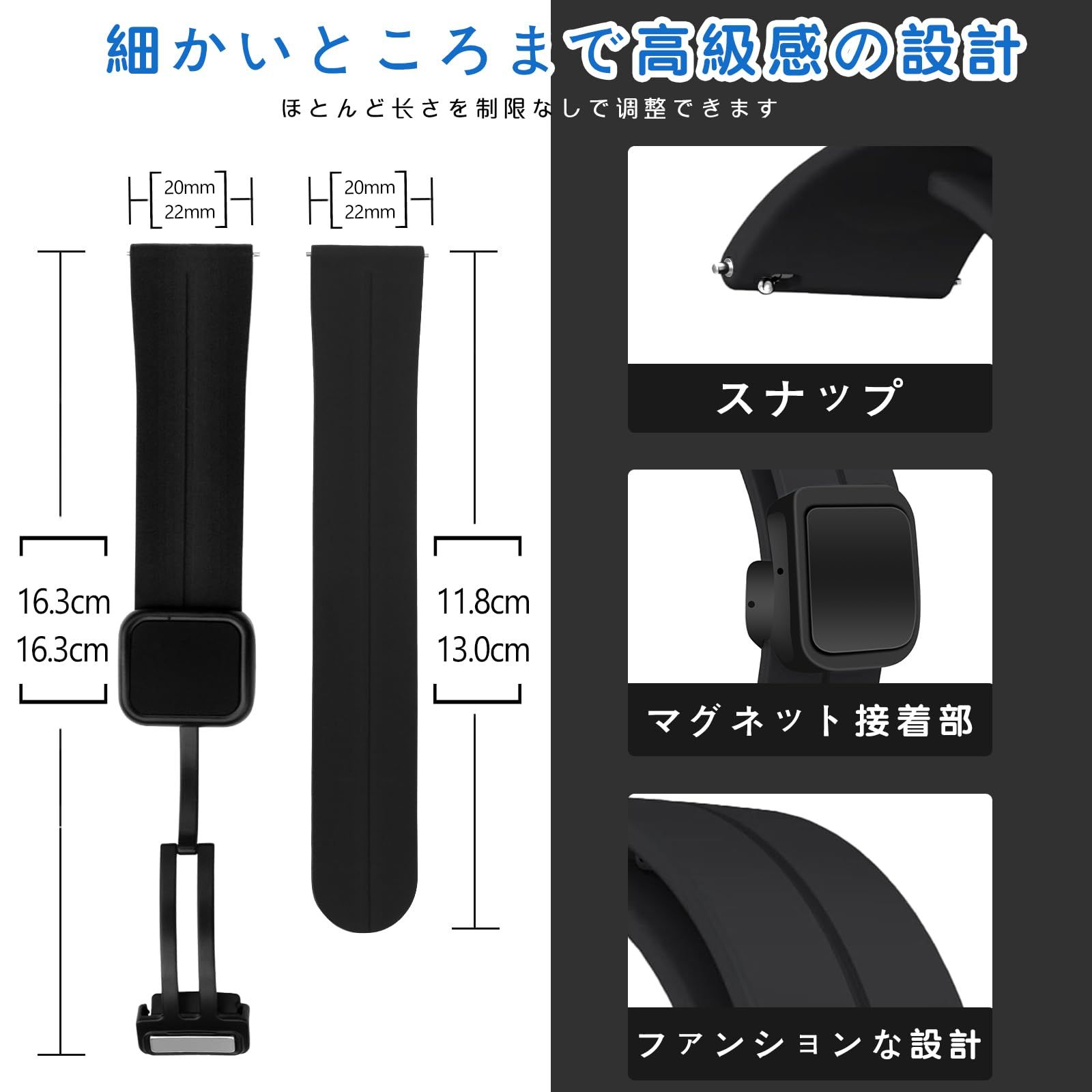 [SIWENGDE] 時計バンド ユニバーサルストラップ 20mm 22mm 腕時計バンド シリコン【瞬間装着&無段階長さ調整】 防水時計替えベルト 時計ベルト 20ミリ 22ミリ スマートウォッチバンド ベルト 交換ベルト 替えバンド ユニバーサル時計バンドQuick Release ほとんどのスマートウォッチと互換性があり ウォッチベルト ウォッチバンド