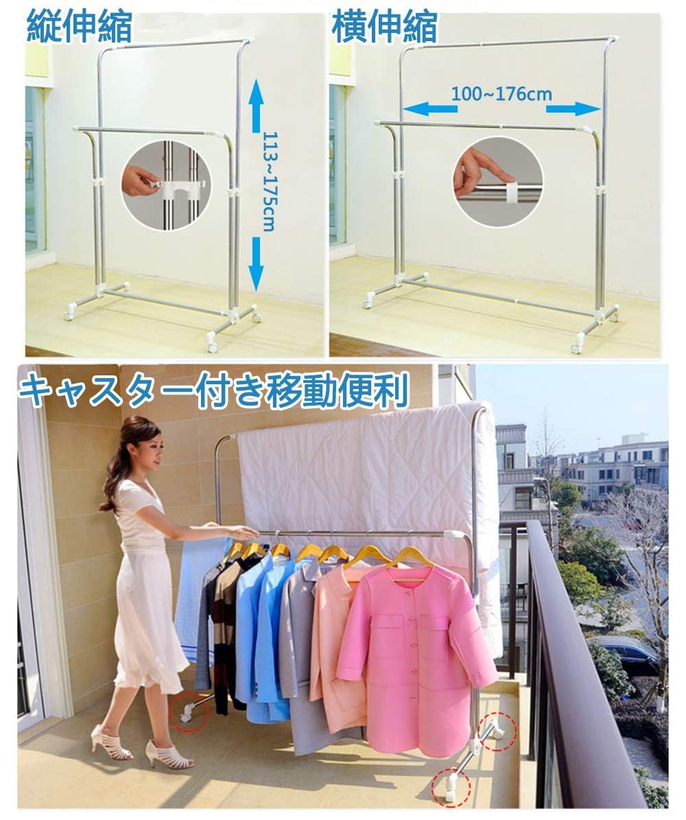 BAOYOUNI ベランダ物干し 物干しスタンド キャスター付 特大洗濯物干し ステンレス巻きパイプ防錆処理 布団干し ベランダ 室外 室内物干し 物干しスタンド 物干し台