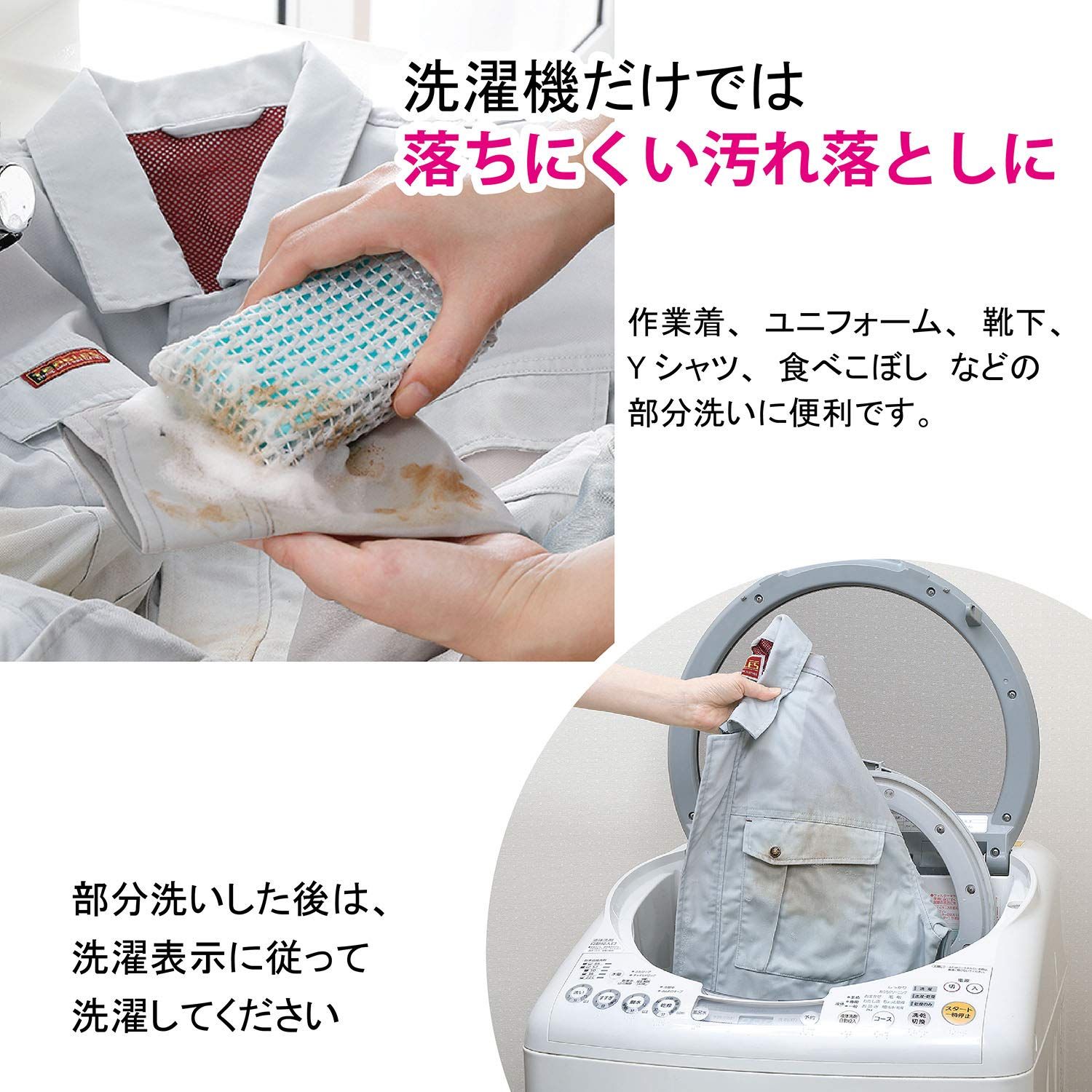 2)こすったあとは、洗濯表示に従い、洗濯してください。