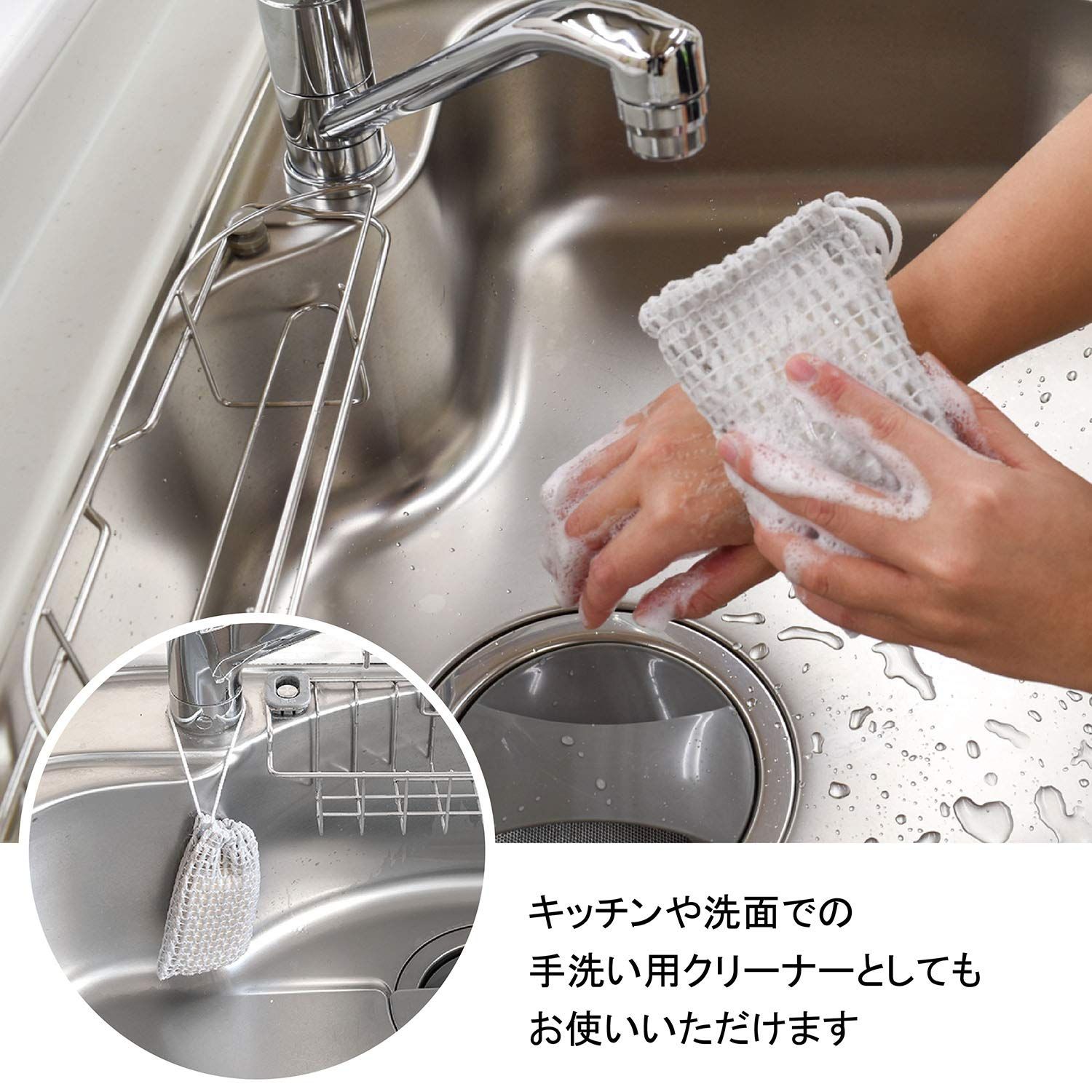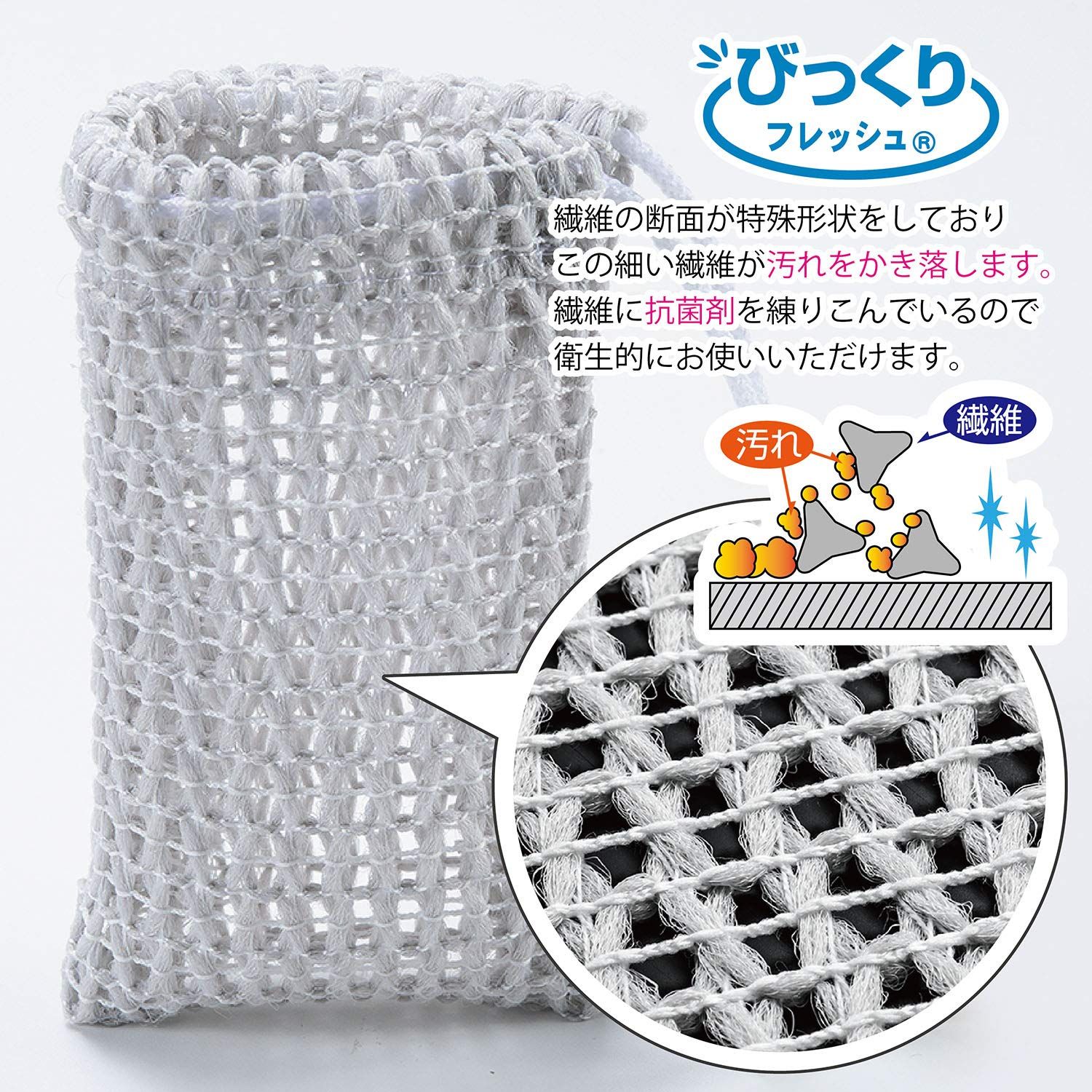 袋状、メッシュタイプですので、毎回洗剤をつける手間が省けます。洗剤が小さくなっても使いやすく節約にもなります。