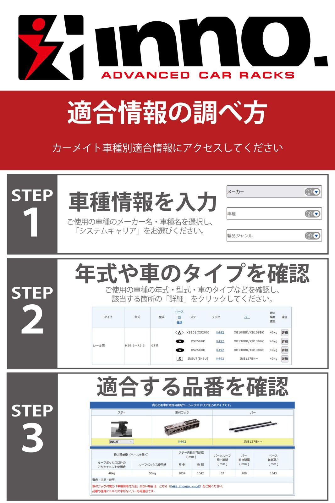 カーメイト(Carmate) inno(イノー) ベースキャリア 車種別フック 適合車種: スイフト H29.1~ (ZC13S / ZC33S / ZC43S / ZC53S / ZC83S / ZD53S / ZD83S 系) 5ドア 等 ※ スイフトスポーツ 含む ←こちらの車両にINNO ベース キャリア を取り付けする際に必要なパーツです K494