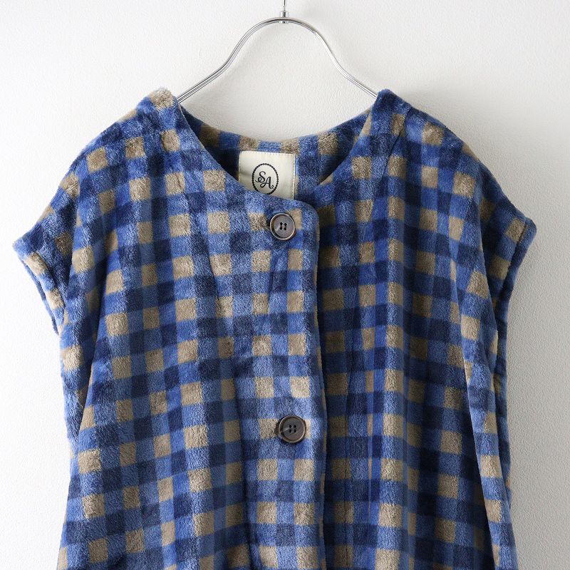 【品名】未使用 ノベルティ サマンサモスモス Samansa Mos2 SM2 オリジナルふわふわロングベスト‖ブルー チェック柄