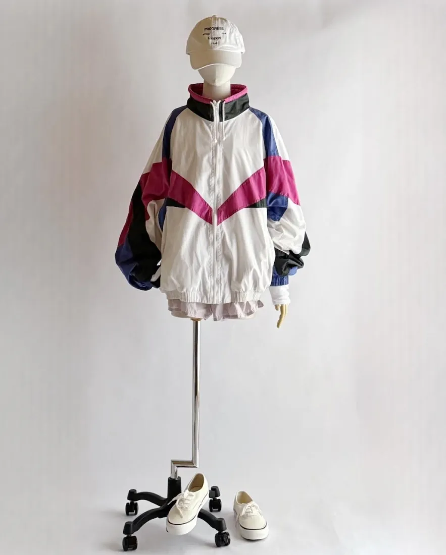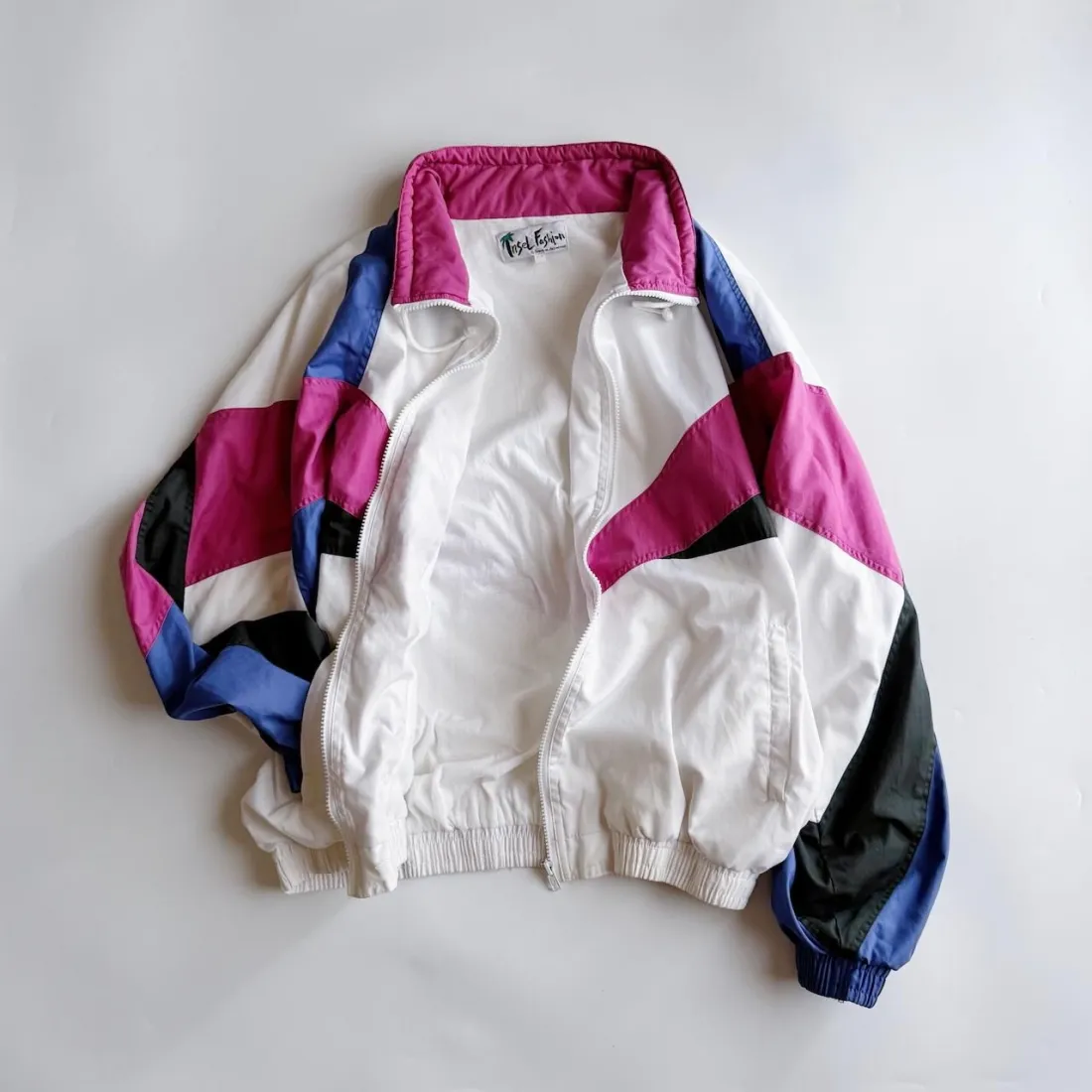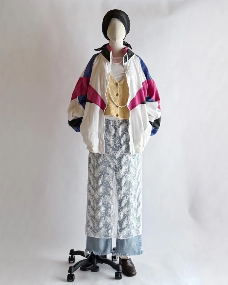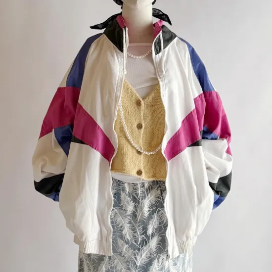 大胆なマルチカラー切替が目を引く、ヴィンテージブルゾン。