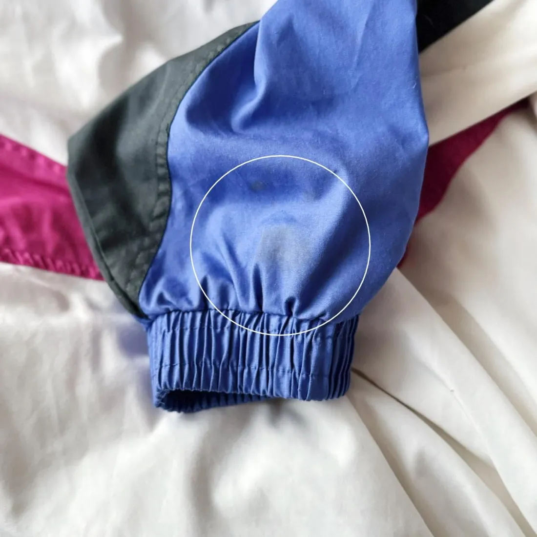 大きな傷はありませんが、フロントポケット近く、袖口などにやや目立つ汚れがあります(画像参照)