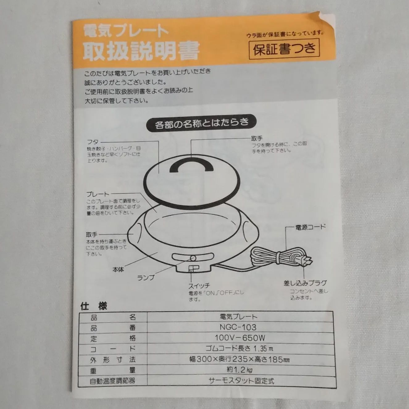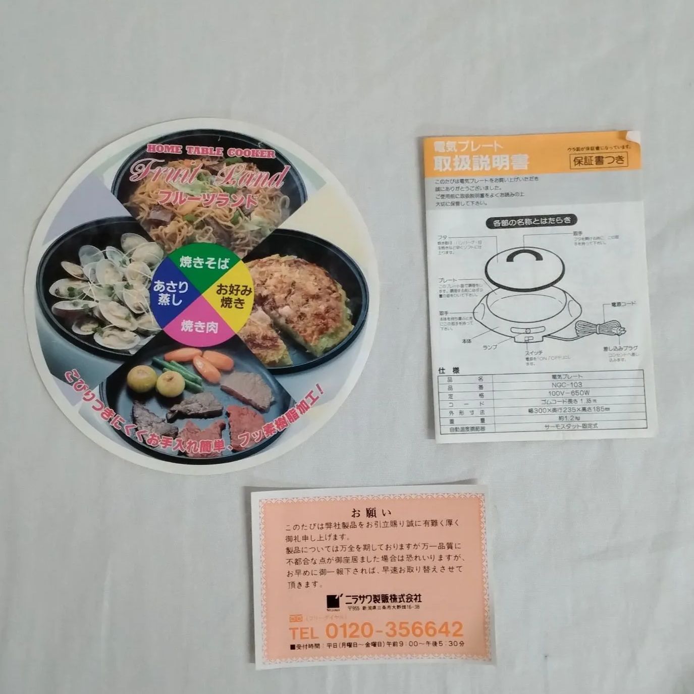 フルーツランド グリルパン ホットプレート 焼きそば あさり蒸し お好み焼き 焼き肉 フッ素樹脂加工 説明書入りです。