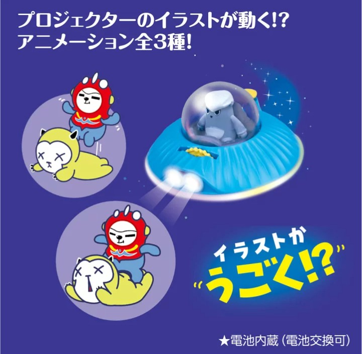 【商品説明】 壁に映すだけでキャラクターのイラストが動いて見える,UFOデザインのプロジェクターです