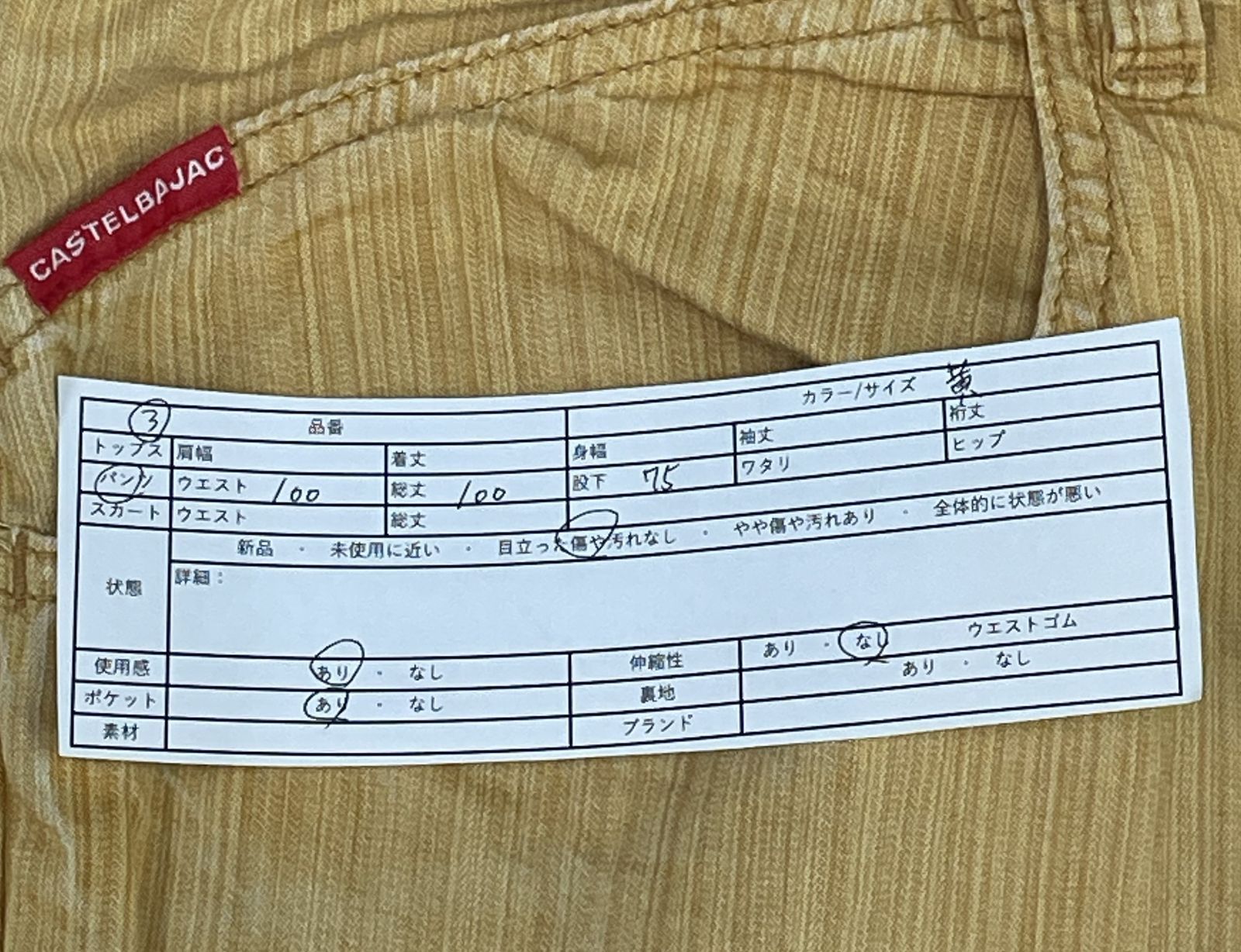 ③CASTELBAJAC : カラーパンツ(イエロー)