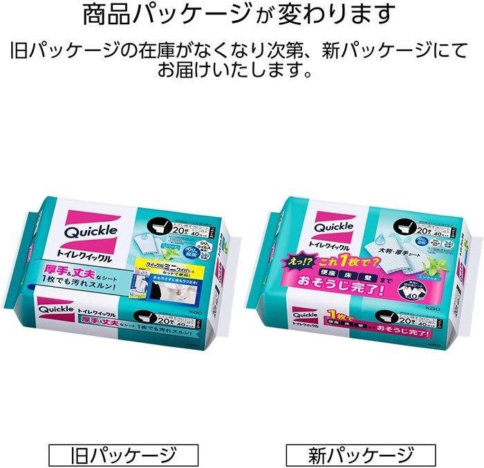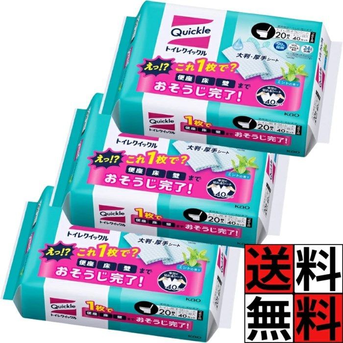 トイレクイックル 詰め替え 20枚 シート 花王 大判 厚手 お掃除 そうじ 便座 床 壁 フチ裏 流せる ミシン目 ミニワイパー でも使える ミント 香り ×3個