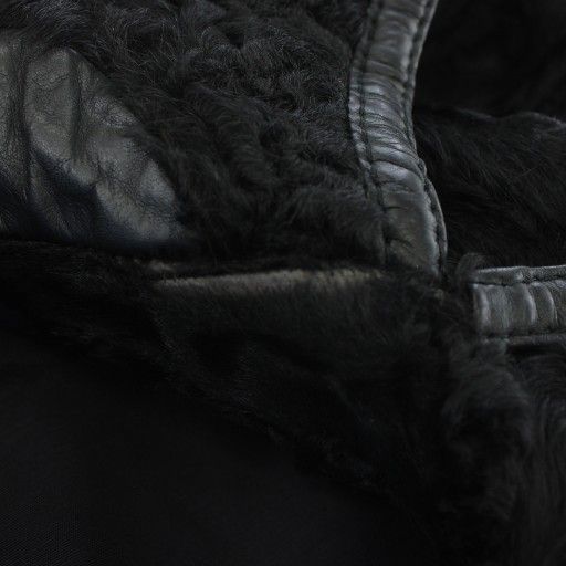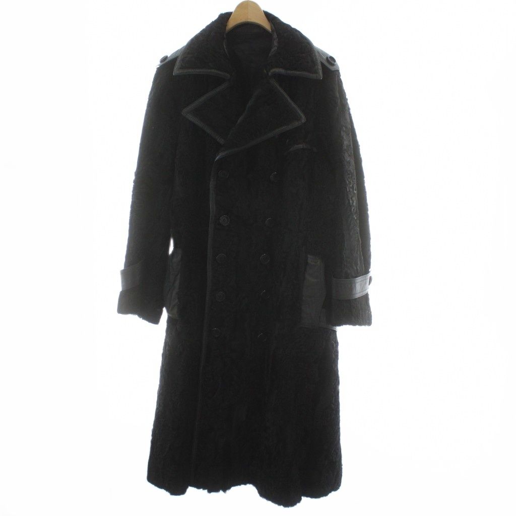 【商品名】ファーコート ロング丈 ラム レザー 毛皮 48 黒 ブラック /PP ■GY18