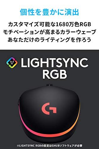 【1680万色RGB】LIGHTSYNCテクノロジーとG HUBにより、RGBライトを約1,680万色から選んでカスタマイズ。セットアップをパーソナライズしたり、他のGギアと同期も可能