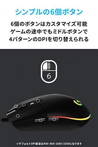 【Logicool G G203 有線ゲーミングマウス】8,000DPIの高性能センサーを搭載したG203はエントリー向け高性能ゲーミングマウス。85gの軽量本体と柔軟に絡みにくいケーブルで激しくマウスを動かしくてもストレスにならない。