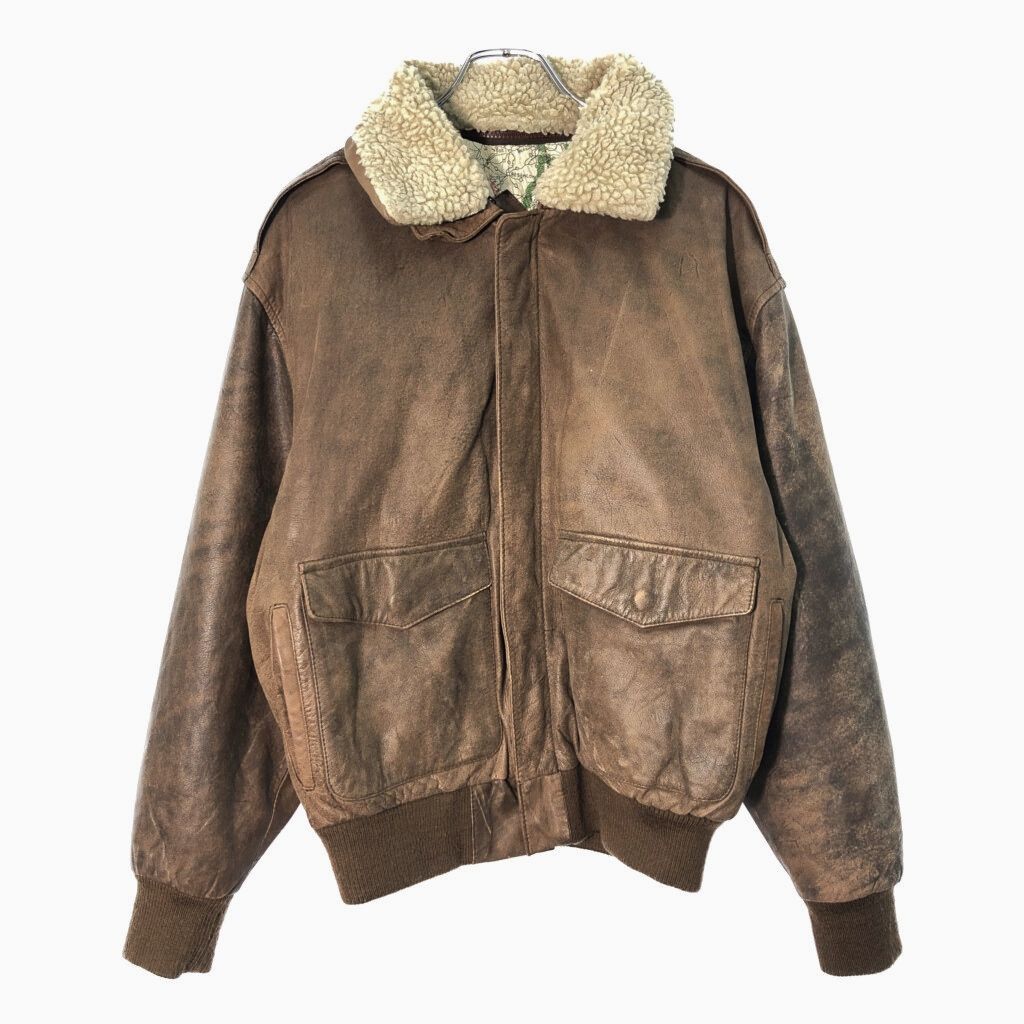 CHARLES KLEIN フライトレザージャケット ミリタリー ブラウン(メンズ M)中古 古着 X0742