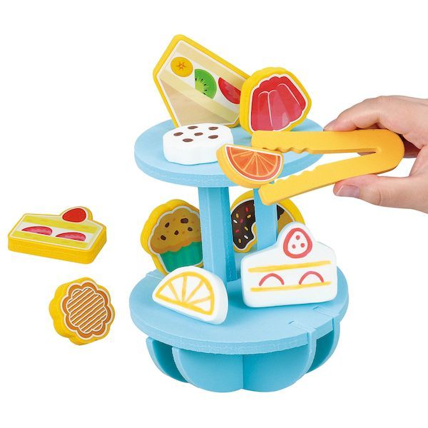 ●ねんどとEVAパーツでスイーツをつくり、ティーパーティー風のバランスゲームが楽しめるおもちゃです。付属のスタンドにスイーツを積んで遊べるほか、ごっこ遊びとしても幅広く活用できます。作ってからも長く遊べる内容で、ワークショップやイベントにも最適です。扱いやすい素材で初心者でも簡単に作れるため、工作教材としても人気です。