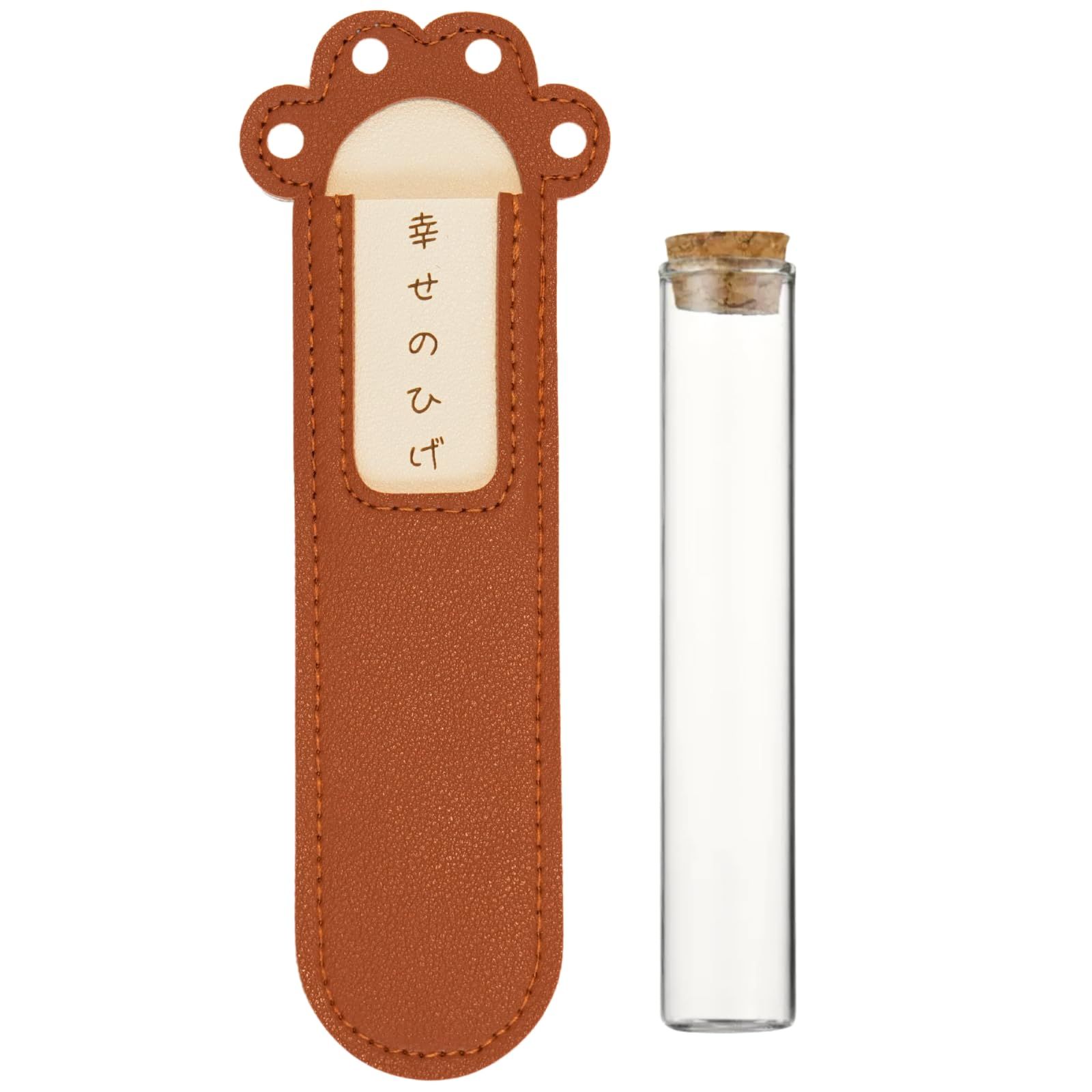 しあわせのヒゲ 猫のヒゲ保存ガラス瓶 革カバー付き 猫 ひげ 収納 二重構造 猫の毛収納 髭 ペットの思い出 保管 猫グッズ (ベージュ)