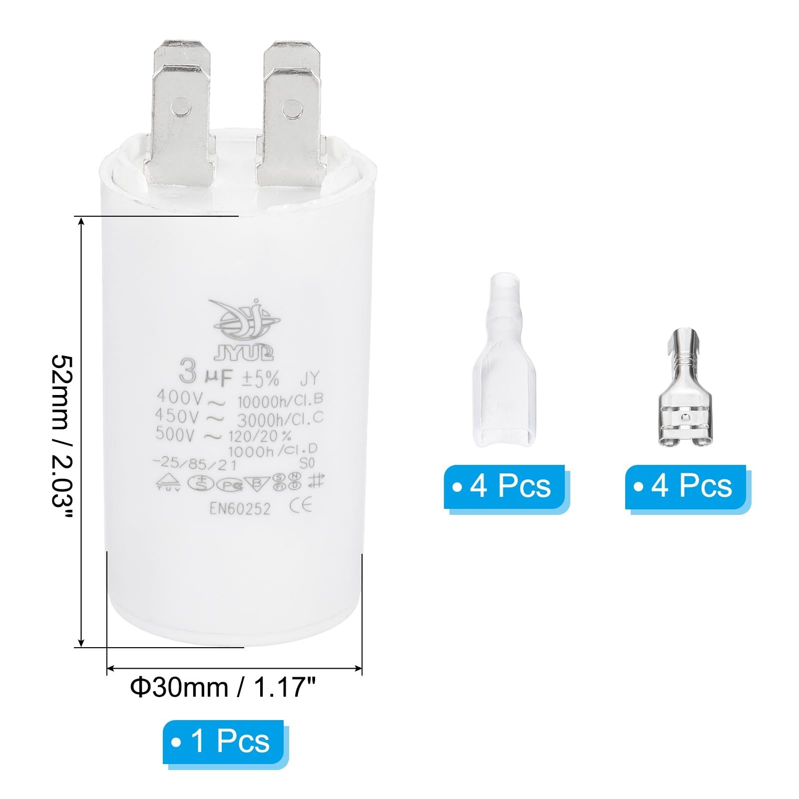 PATIKIL コンデンサ CBB60 3uF モーターコンデンサ AC 450V 4ピン ダブルインサート シーススプリング付き シリンダー型 エアコン コンプレッサー モーター始動用 ホワイト