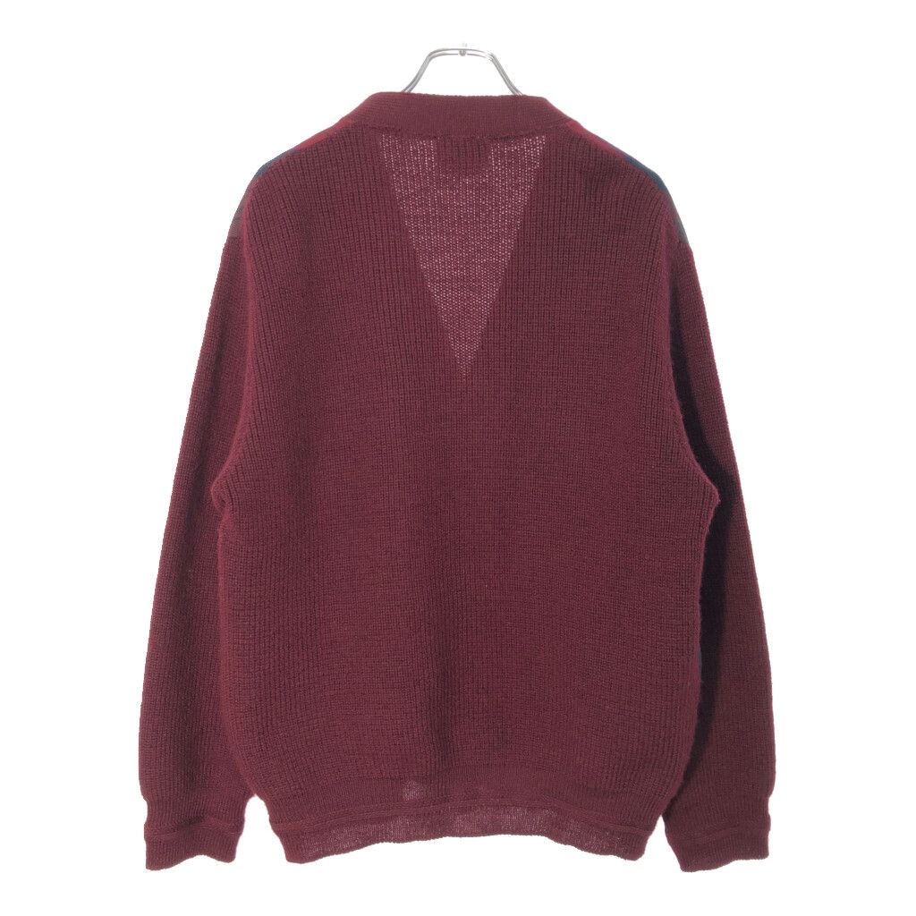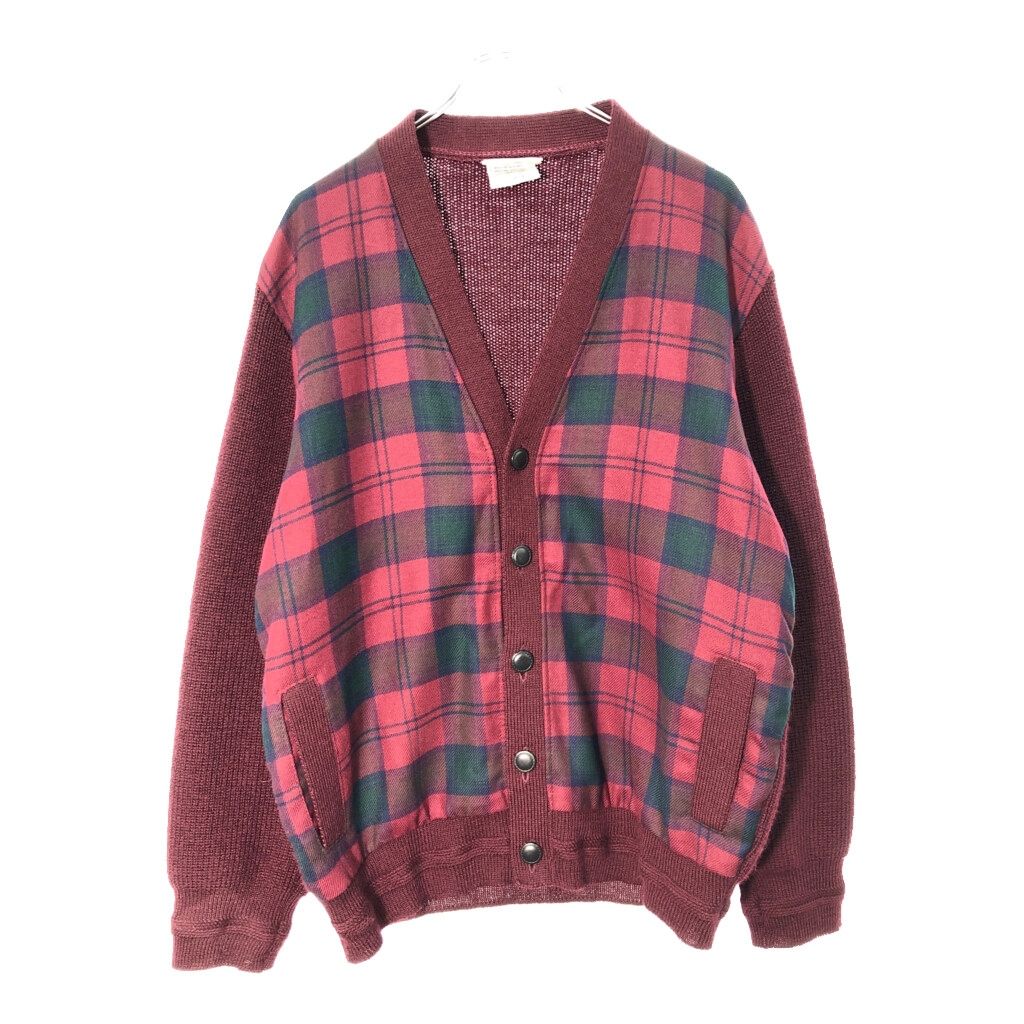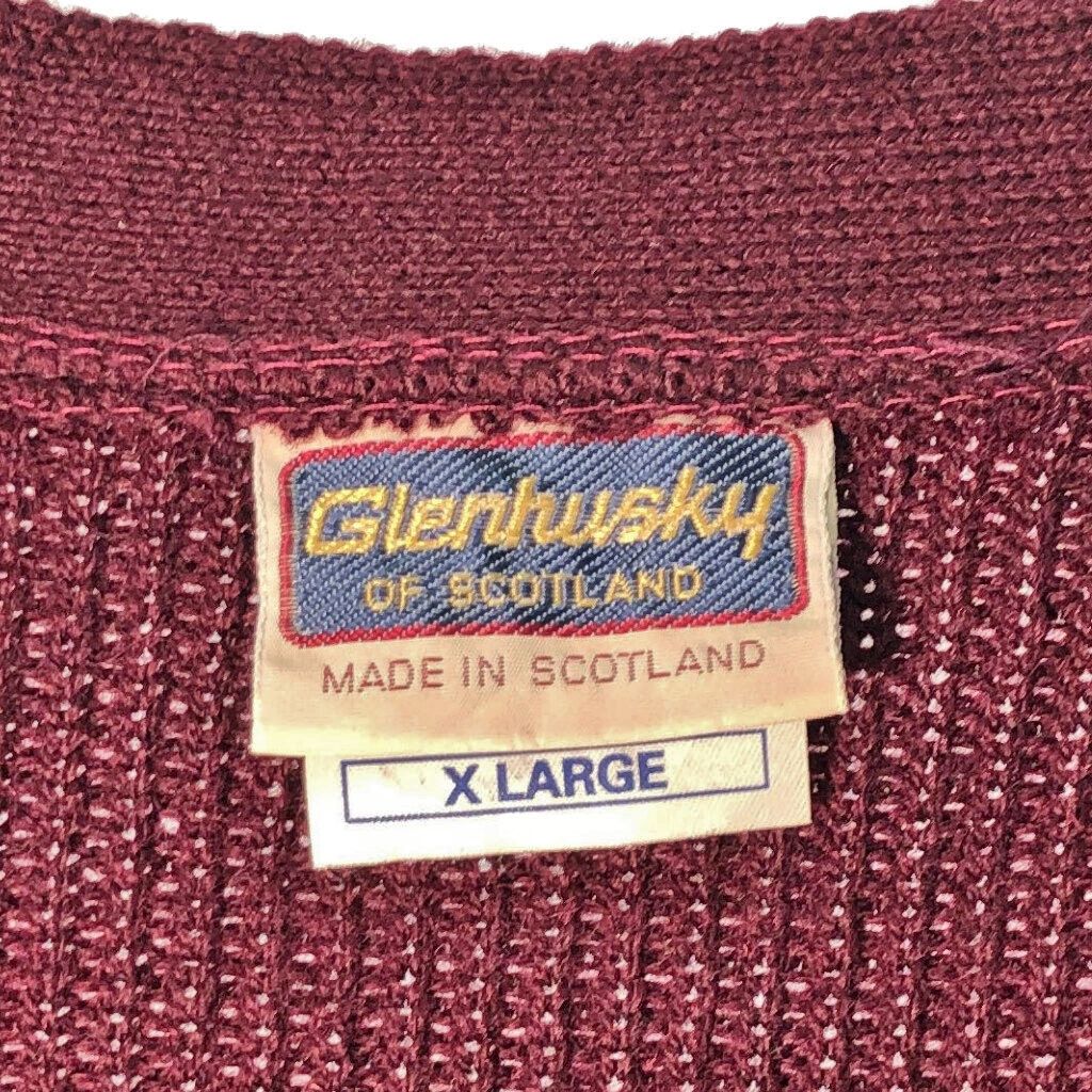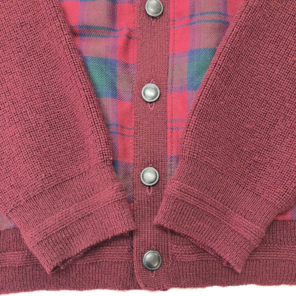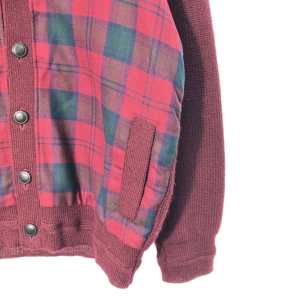 80年代 スコットランド製 Glenhusky ウールニットカーディガン タータンチェック レッド(メンズ X-LARGE)中古 古着 X0746