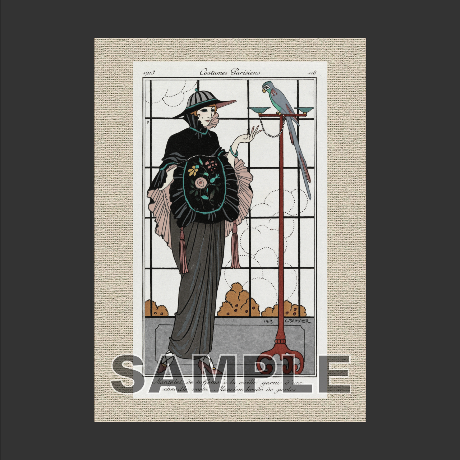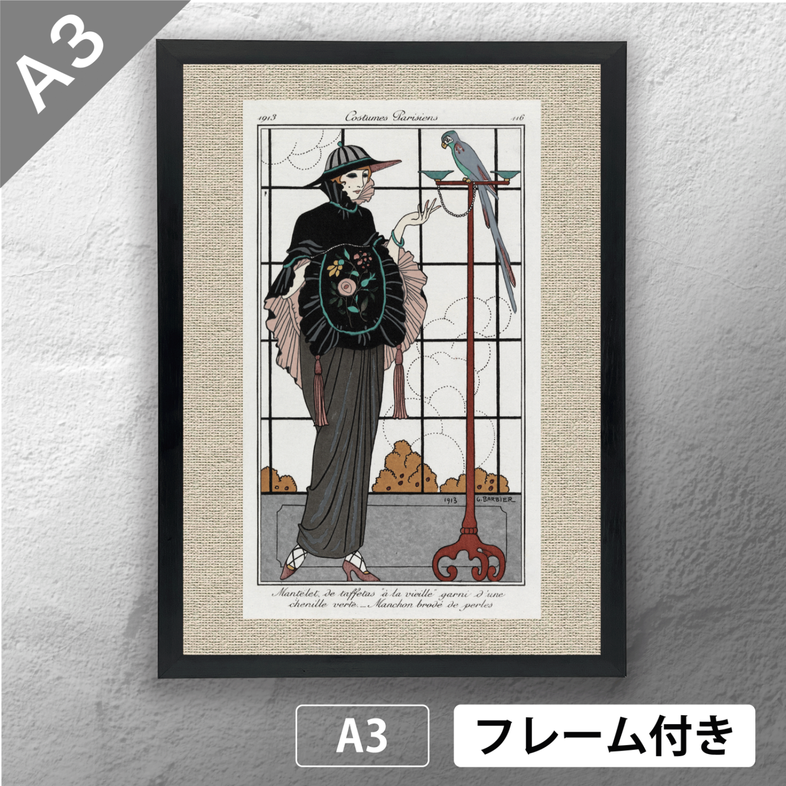 ジョルジュ・バルビエ(George Barbier) 「 タフタのケープとパール刺繍のマフ 」 アール・デコ アートポスター A3 マット その121 【フレーム付】《IN》