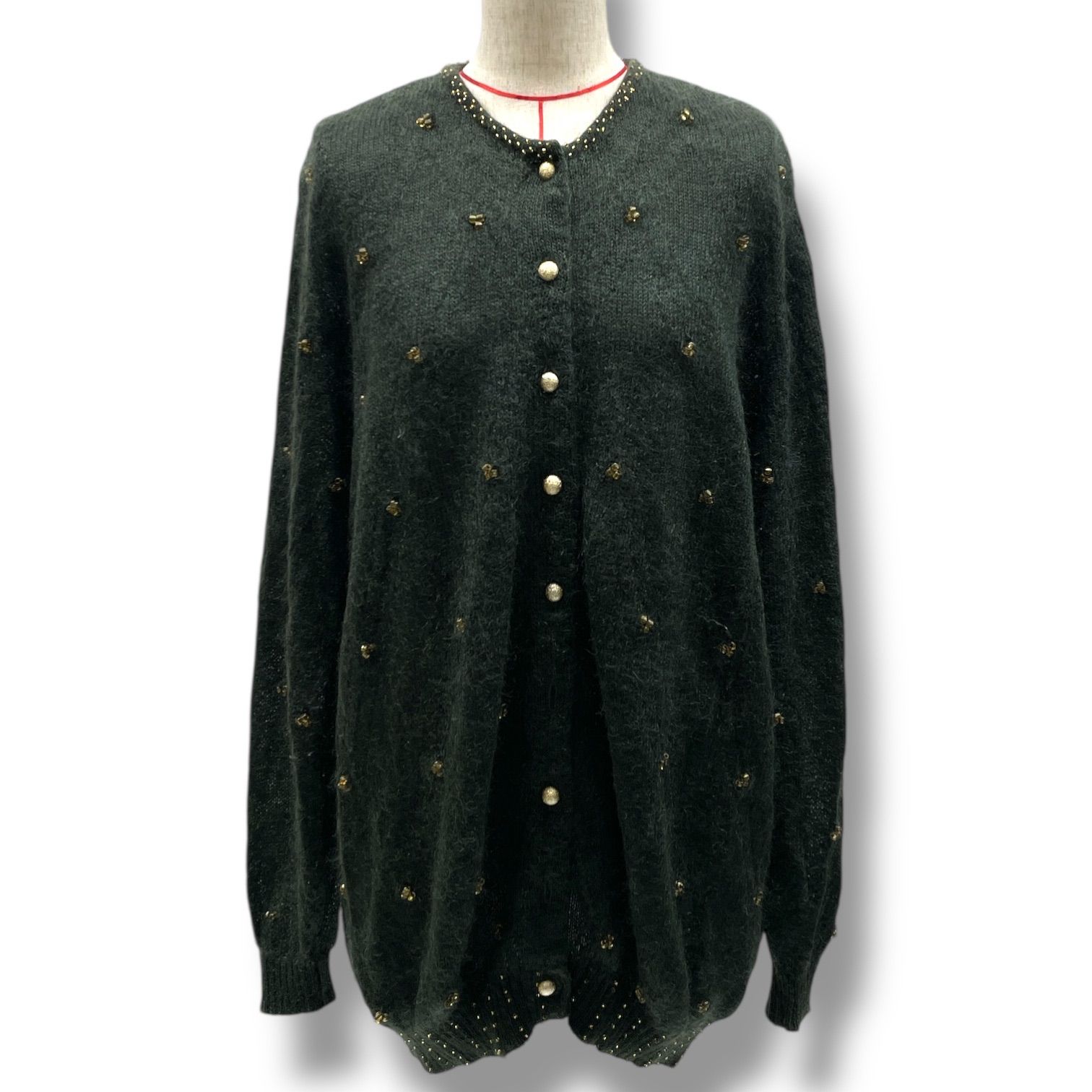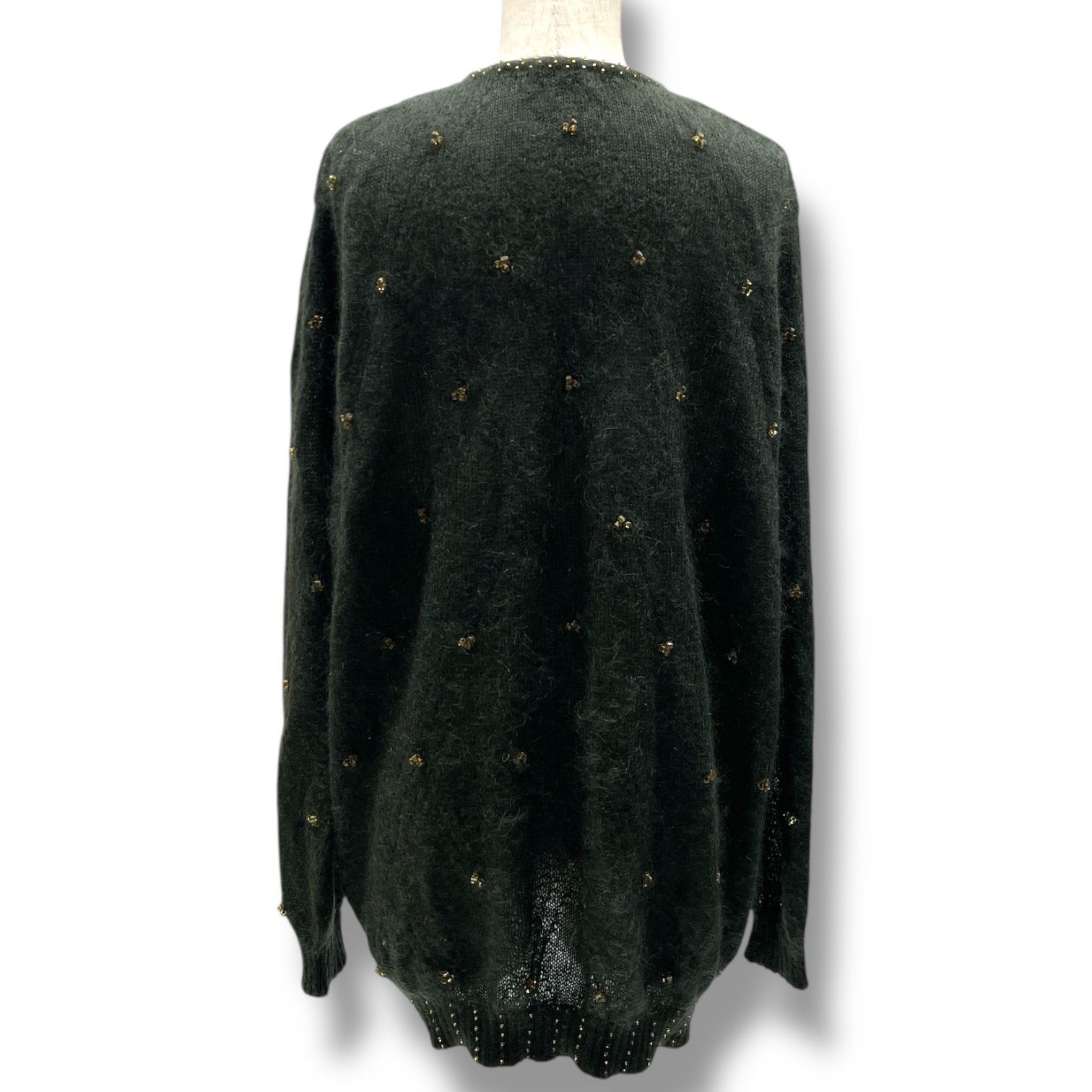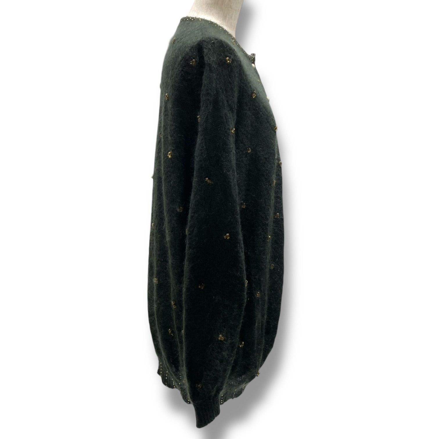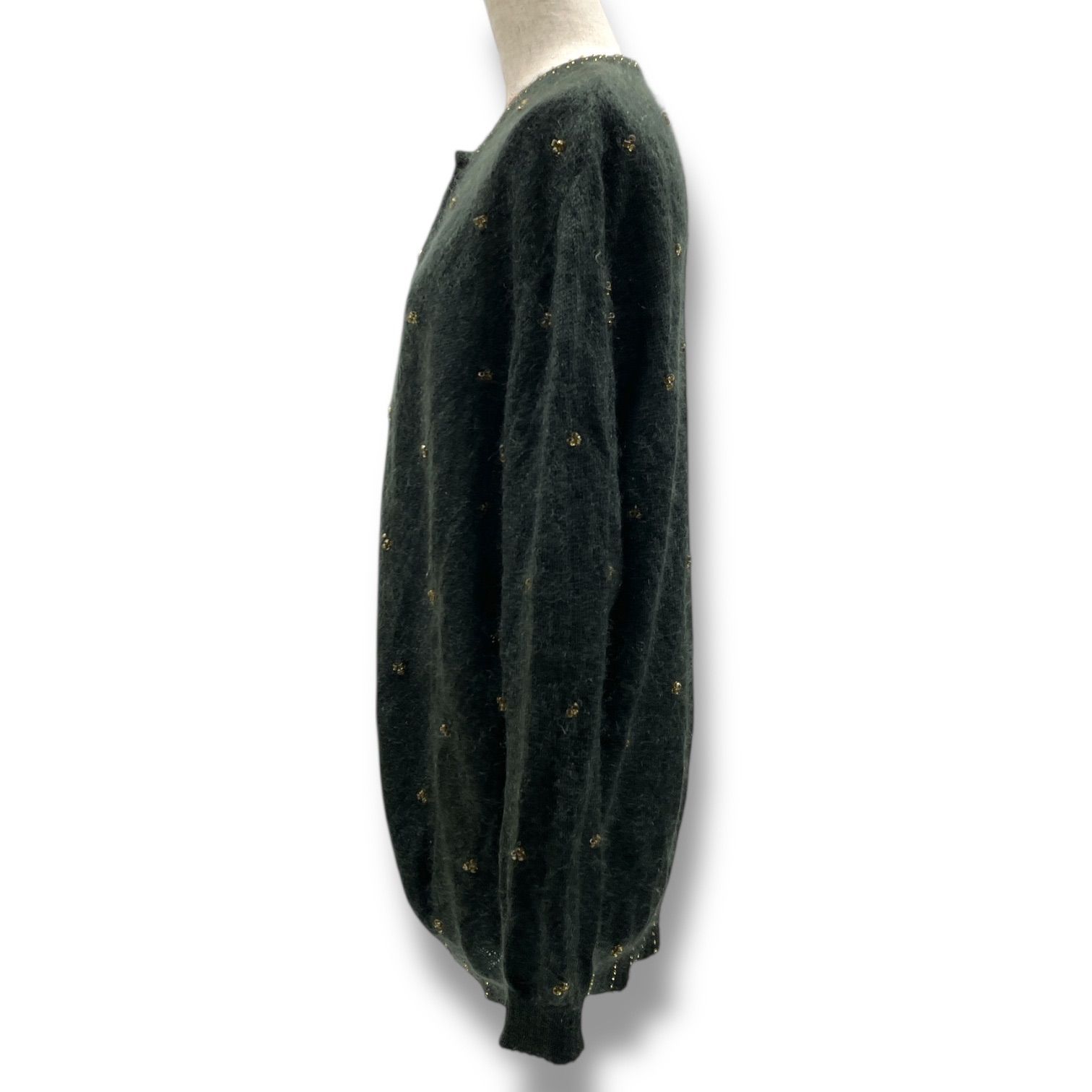 ATELIER SAGAN アトリエサガン ビーズ刺繍 ニットカーディガン キッドモヘヤ シルク 金ボタン 長袖 羽織り レトロ 緑 ダークグリーン レディース 秋 冬 ゴーゴー古着マルイファミリー溝口店 5 No.371