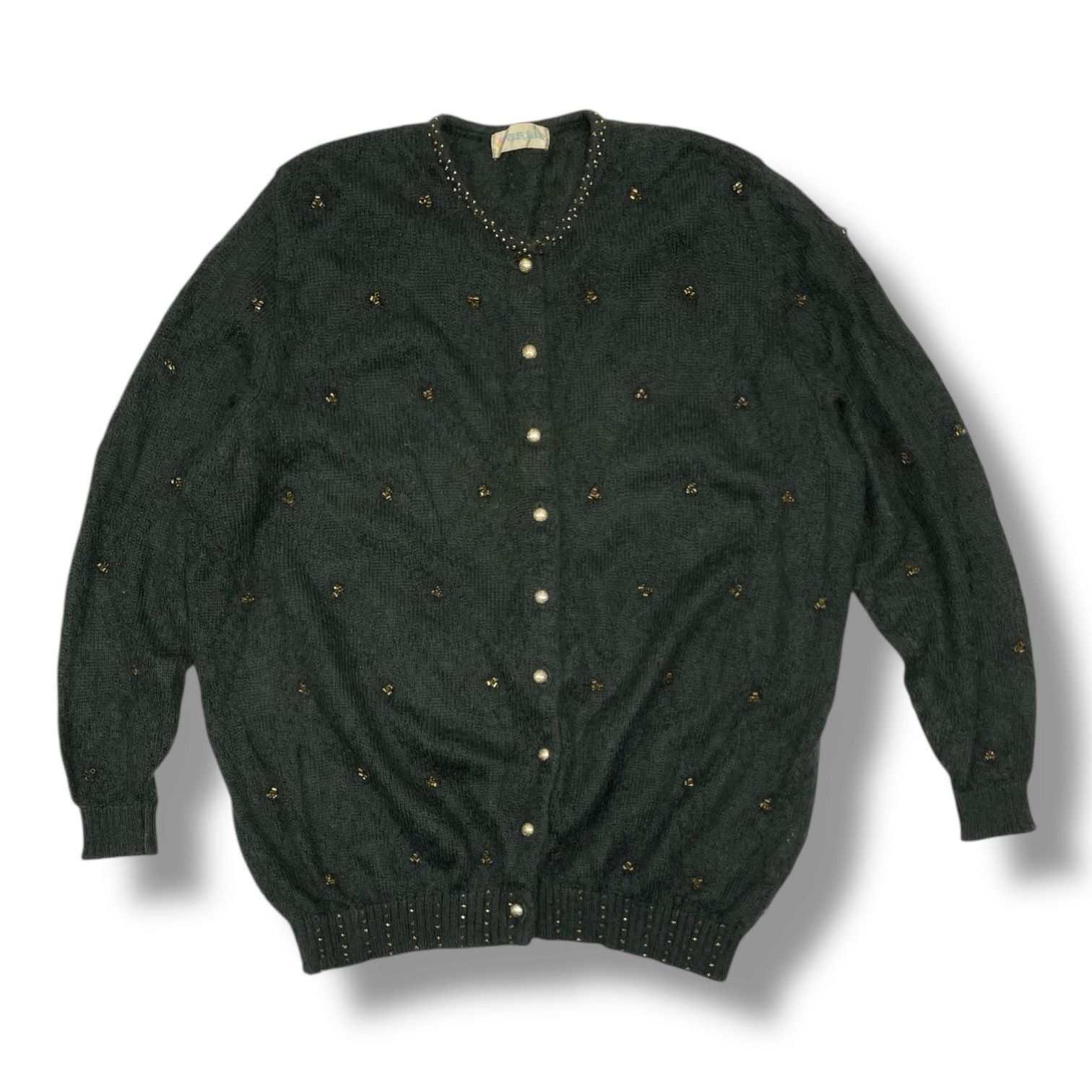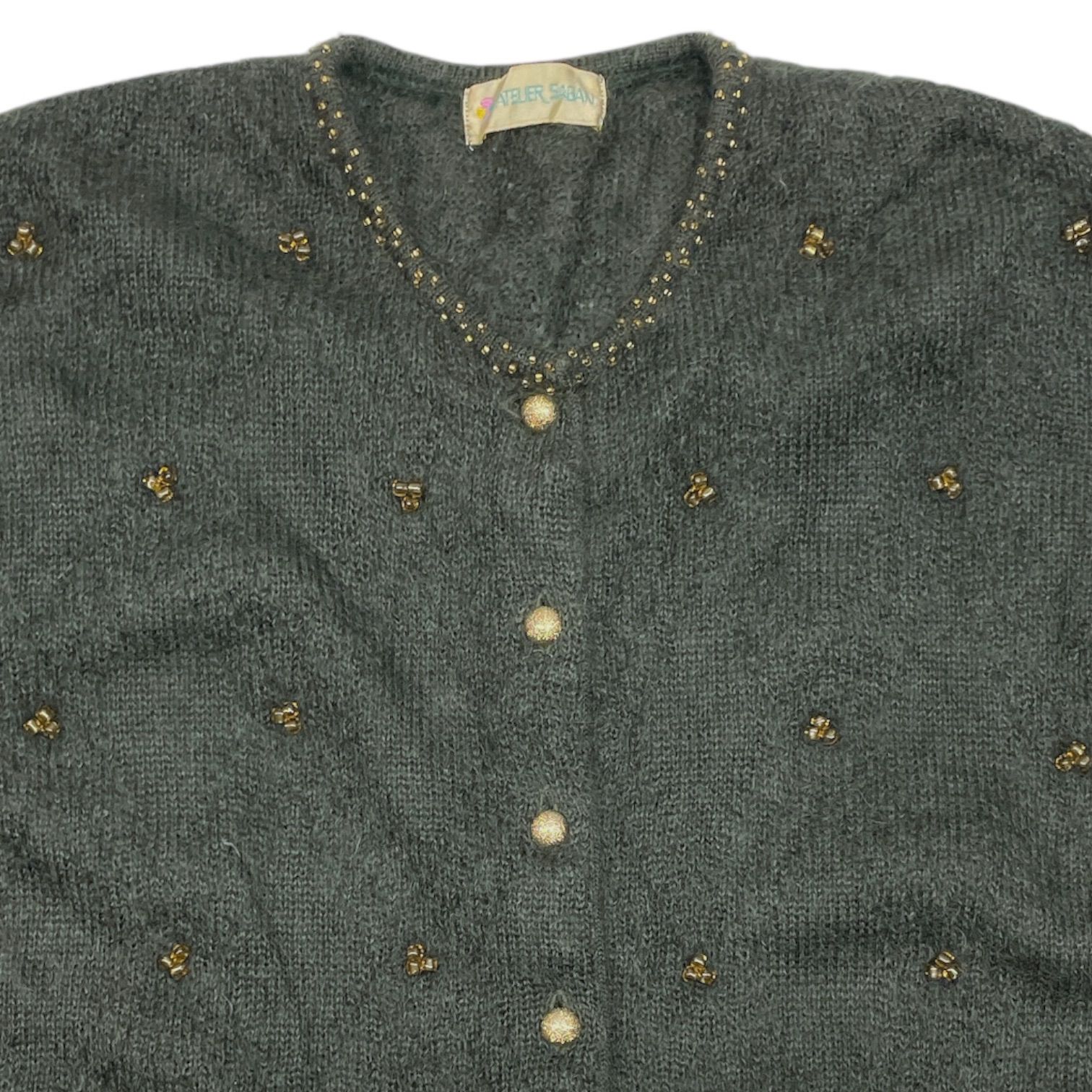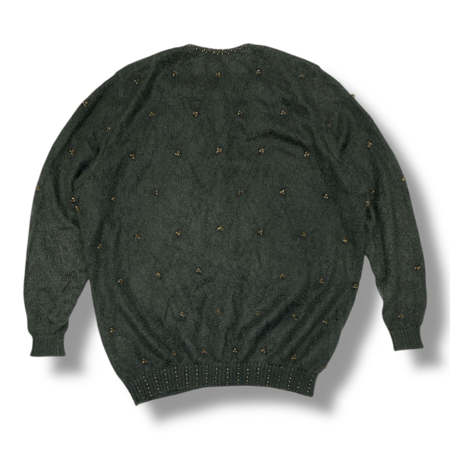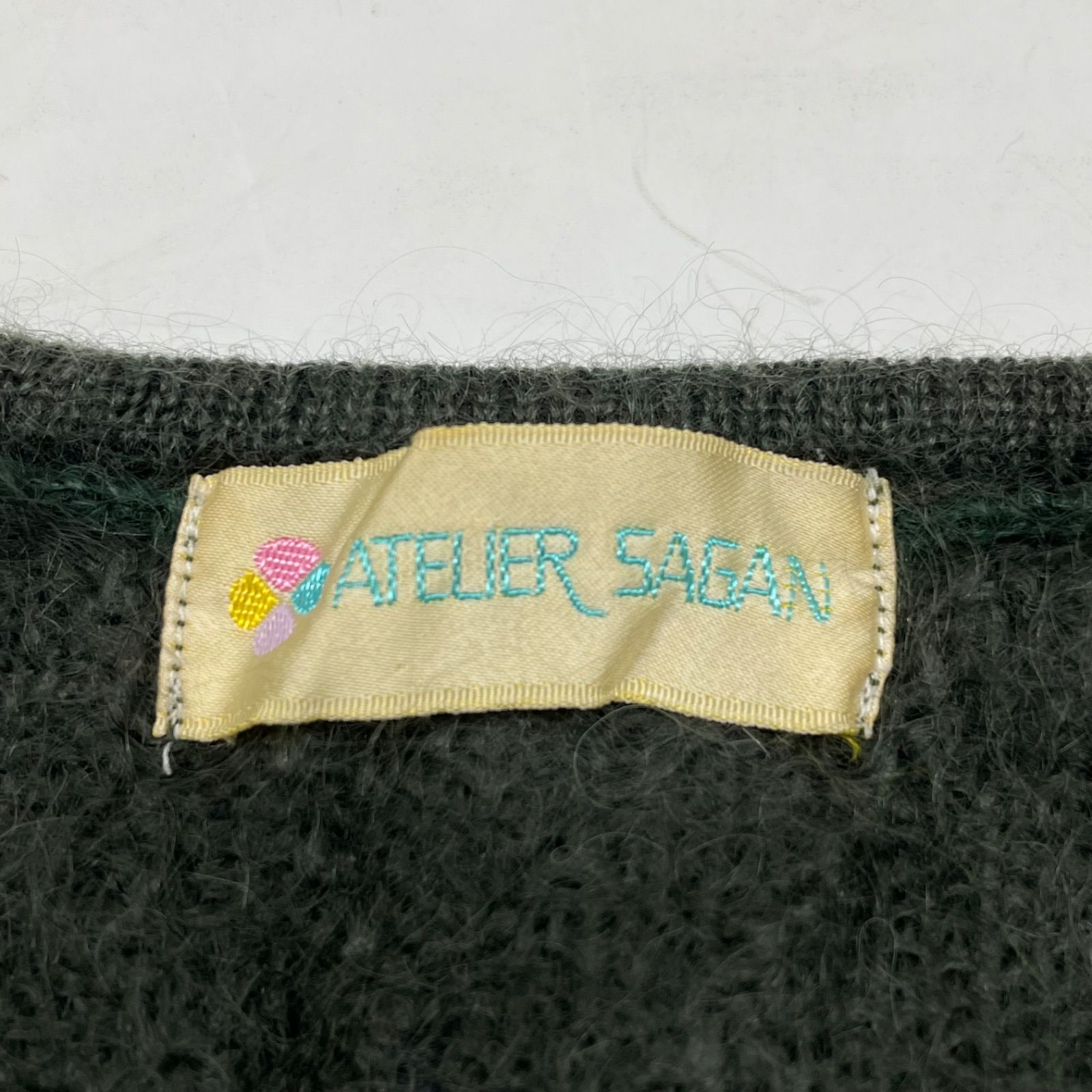 ATELIER SAGAN アトリエサガン ビーズ刺繍 ニットカーディガン キッドモヘヤ シルク 金ボタン 長袖 羽織り レトロ 緑 ダークグリーン レディース 秋 冬 ゴーゴー古着マルイファミリー溝口店 5 No.371