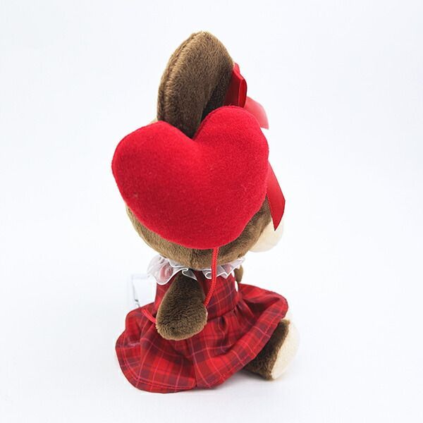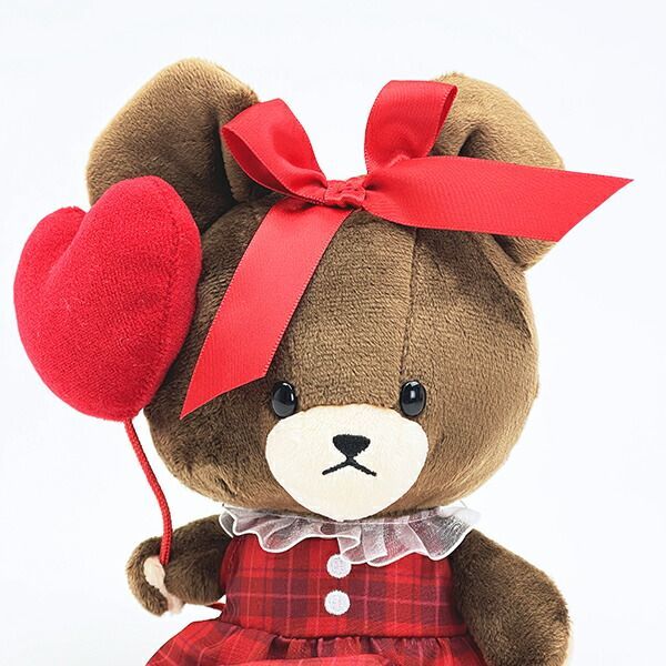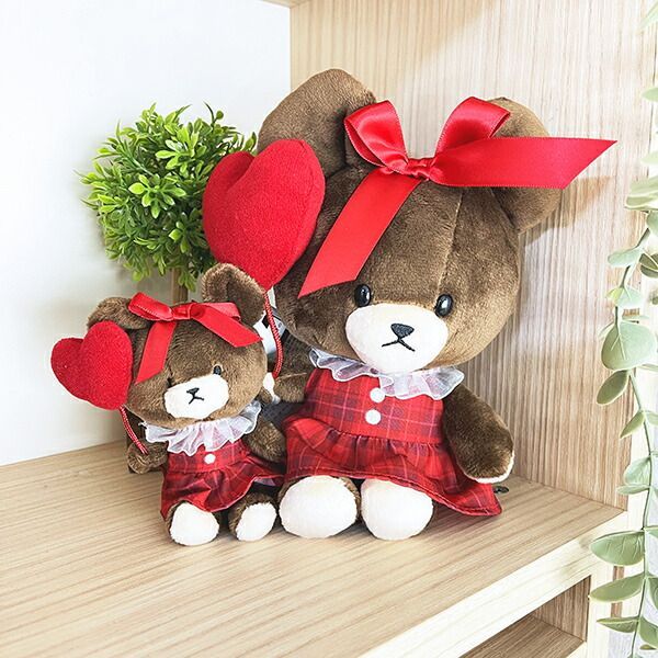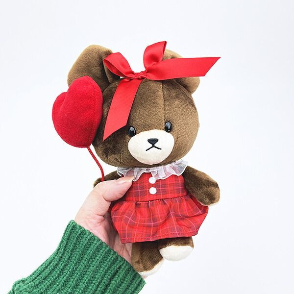 赤いチェック柄のワンピースにハートのバルーンのコーディネートがとってもキュート♪SSサイズのぬいぐるみです♪ 【サイズ:13cm×7cm×17.5cm 素材:-】 【サイズ:13cm×7cm×17.5cm 素材:-】
