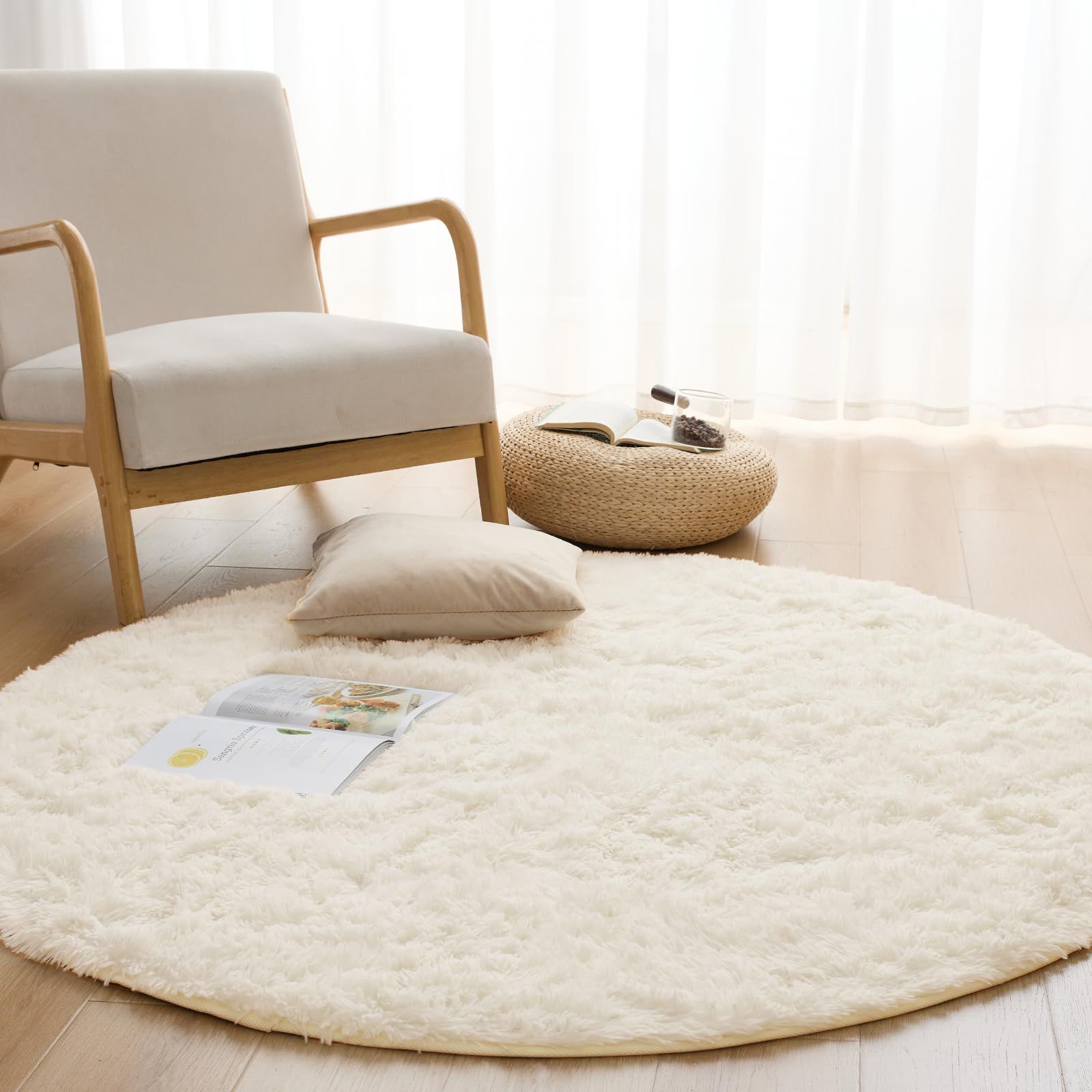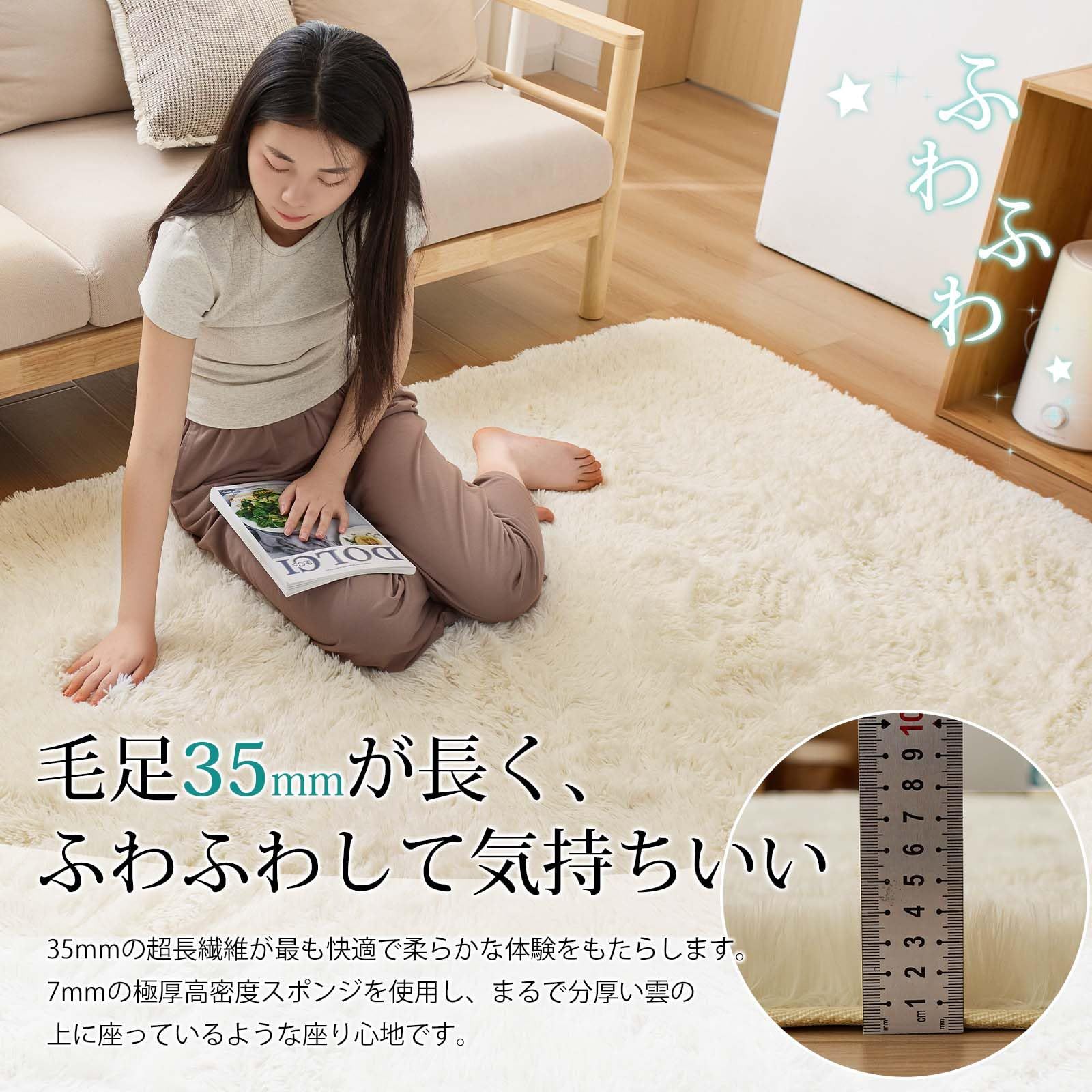 Housecover ラグ カーペット シャギーラグ ラグマット 円形 絨毯 直径120cm 滑り止め付 洗える 防ダニ 抗菌 防臭 オールシーズン快適に使用 床暖房 ホットカーペット対応 ふわふわ肌触り アイボリー01