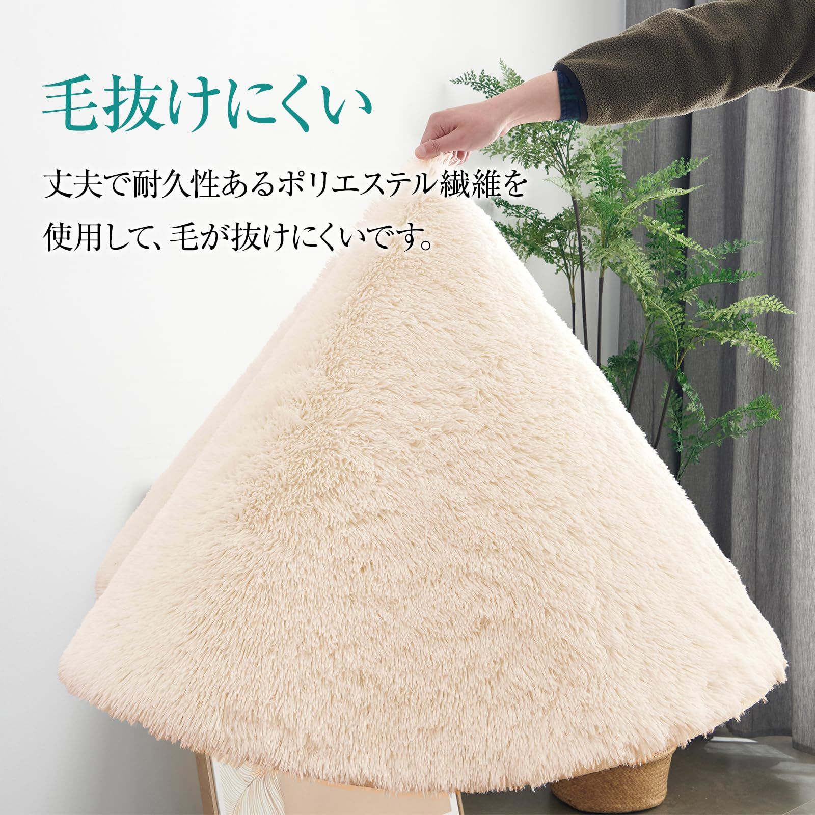 【商品仕様】サイズ:直径約120cm 表地:ポリエステル100% 中材:ウレタンフォーム 裏地:ポリエステル100%。 起毛の高さ:約35mm、ウレタン厚:約7mm、不織布と滑り止め加工は約2mm、合計厚さ約45mmです。