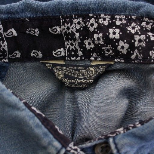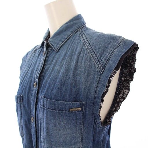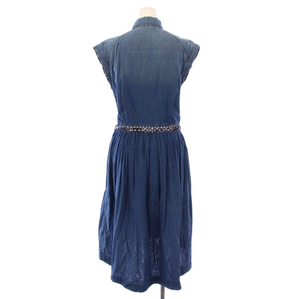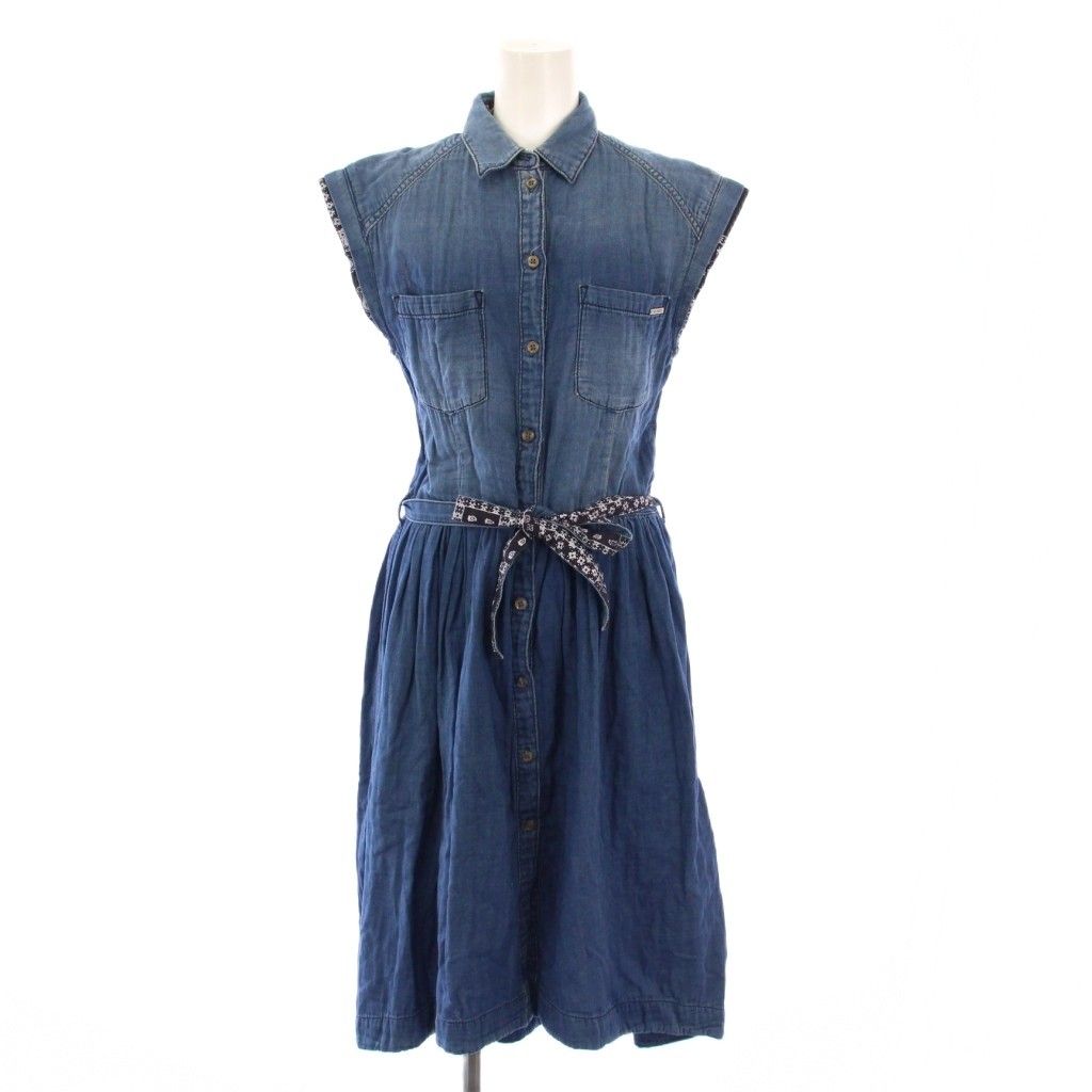 【商品名】ディーゼル DIESEL フレアワンピース ひざ丈 デニム ノースリーブ レギュラーカラー ベルト S 青 ブルー /BB