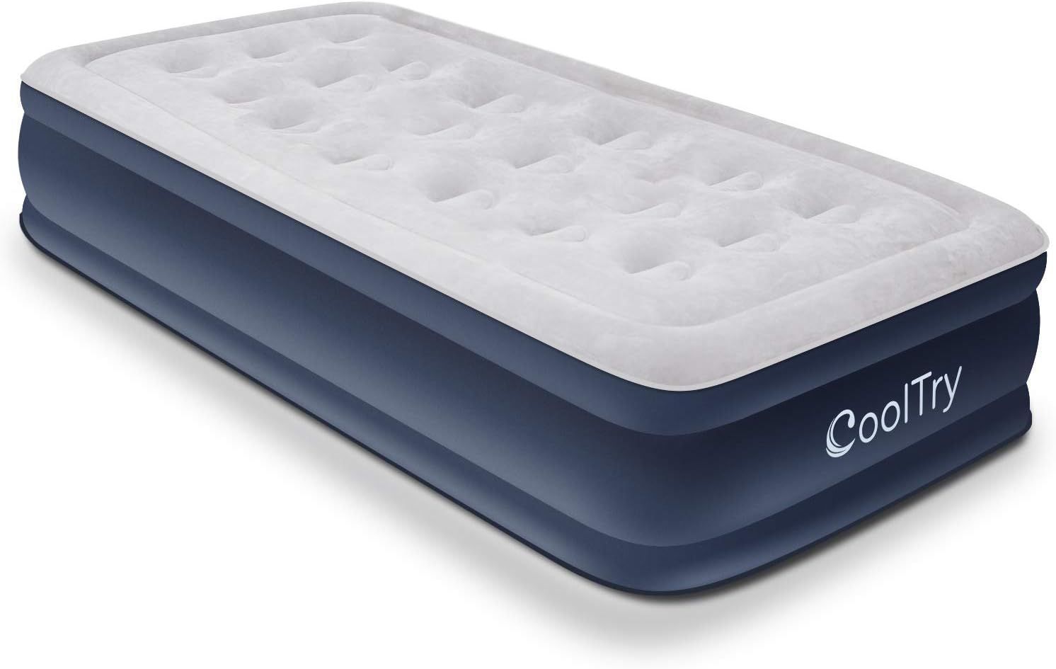 CoolTry 電動エアーベッド シングル サイズ 耐荷重300kg 長さ190×幅99×厚さ38 エアーマットレス キャンプ 電動ポンプ内蔵 高反発 極厚 膨脹式 折り畳み 収納袋付き 寝具
