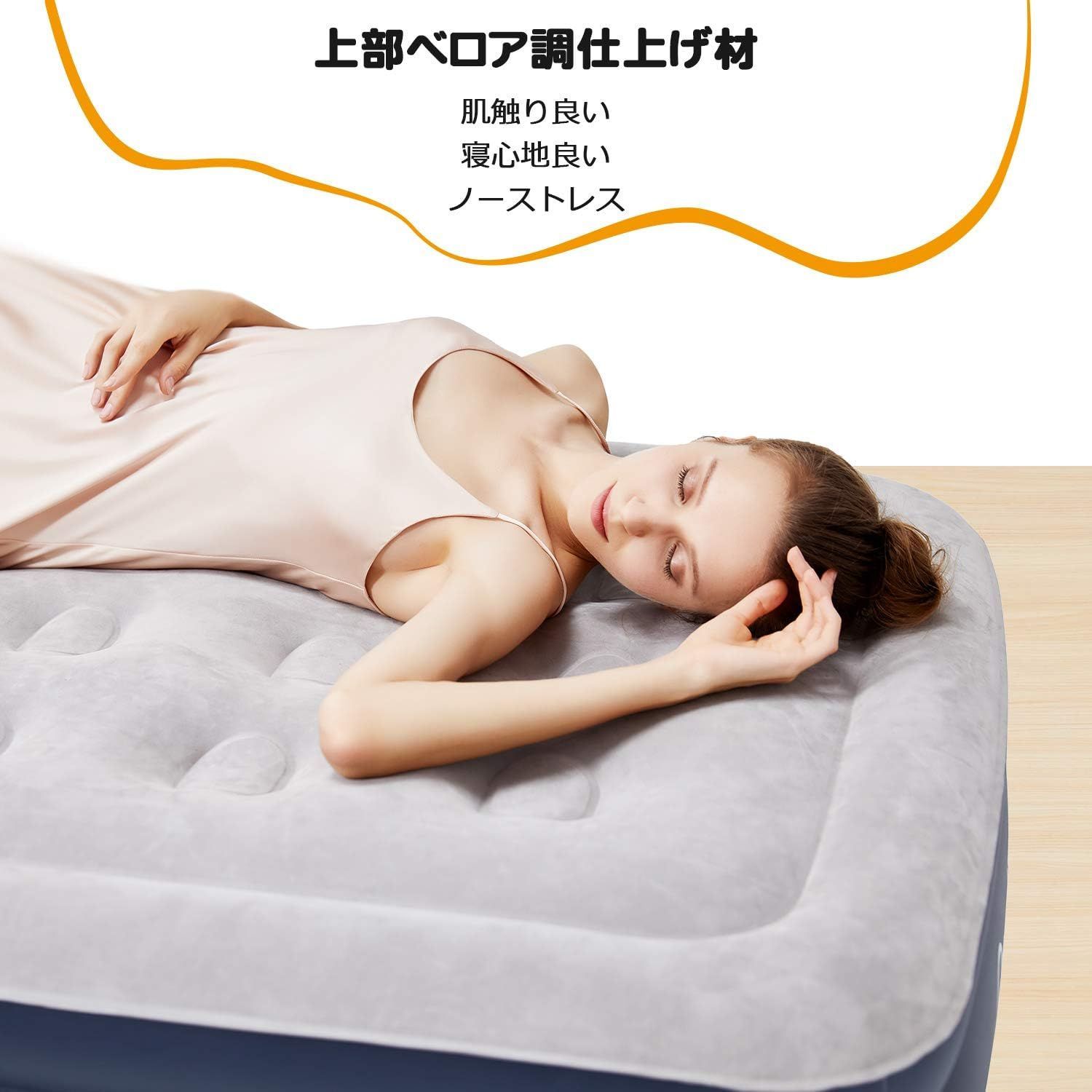 【寝心地よい・快適睡眠】エアーベッドの内部は環状構造で全体が弾力性があり体圧を分散させ背骨と腰への圧力を軽減し背骨の自然な曲線の維持をサポートし、どんなポジションで寝ていても各凹凸が体を点で支える事でベッドと人体を密着させる事が◎体にフィットし快適な寝心地を与えてくれるマイベッドになります。