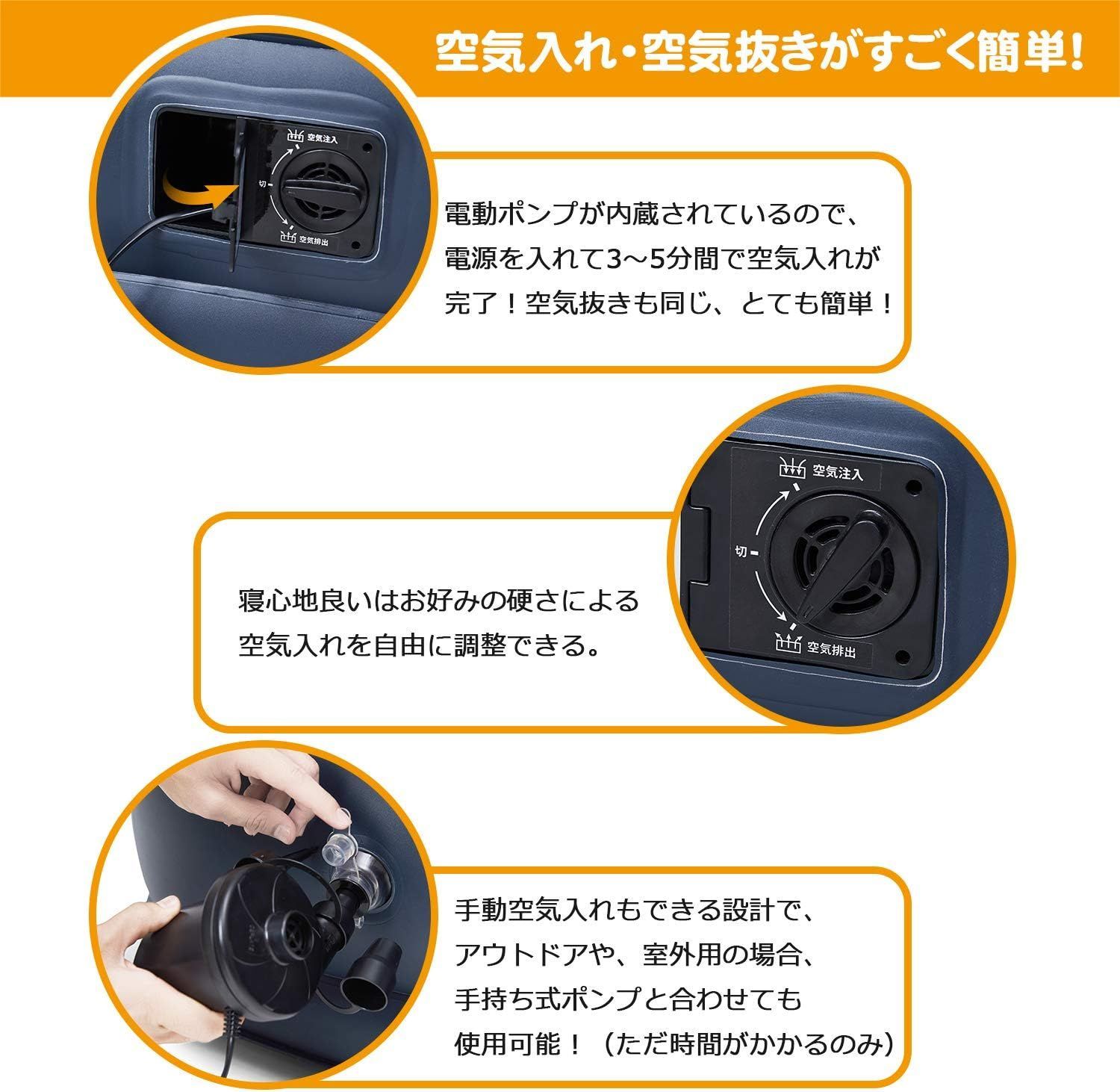 【電動ポンプ内蔵・時間を節約】電動ポンプを内蔵して空気の出し入れ・抜くは電動なので手間いらず3〜4分で膨らませる事が出来ます。お好みに応じて空気量を簡単に調節できます。屋外で使用する場合は、手動ポンプを使用して膨らませる事も出来ます。※長時間使用すると自然に空気が漏れますので2日ごとに10〜15秒の空気を入れる事をお勧めします。
