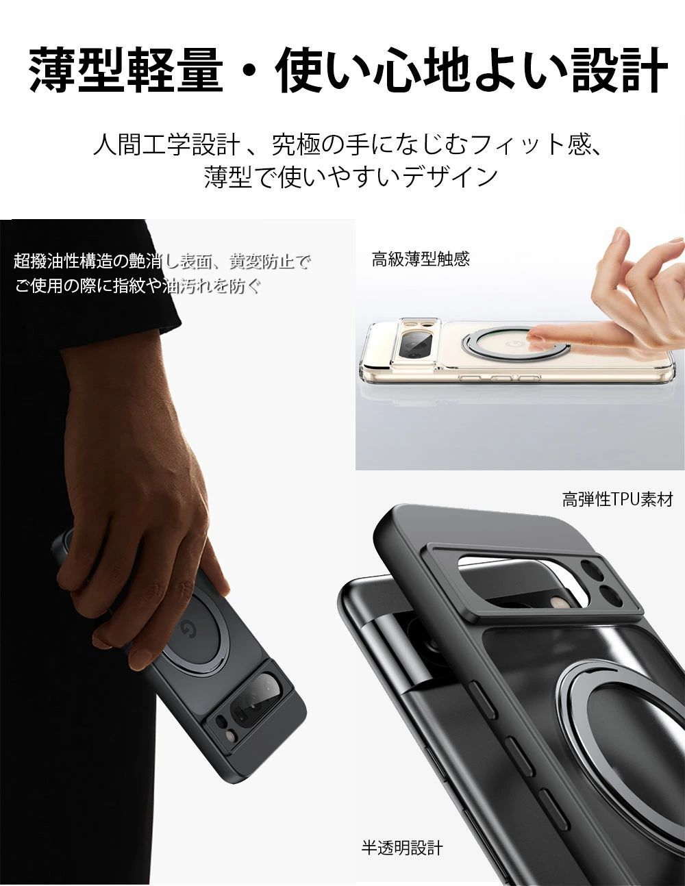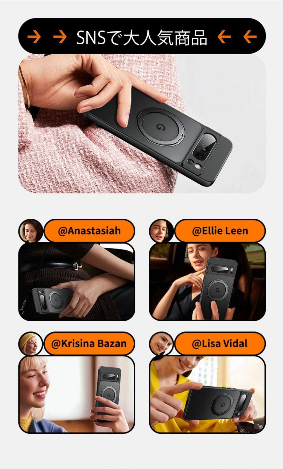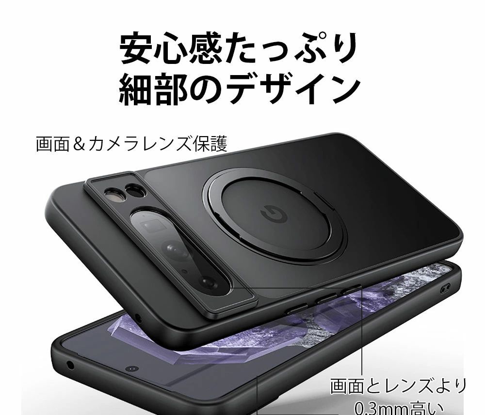 衝撃吸収性に優れた素材と構造が、誤って落とした際の衝撃を効果的に軽減。スマホの画面やカメラレンズの落下による損傷を保護するために、レンズやエッジよりも少し高いデザインを採用し、こんなの細部のデザインは安心感たっぷりのなっています。スマホをしっかり保護します。更にケース四隅には、高耐震クッションを搭載しており、google pixelケースを落下などの衝撃からしっかりと守ります。
