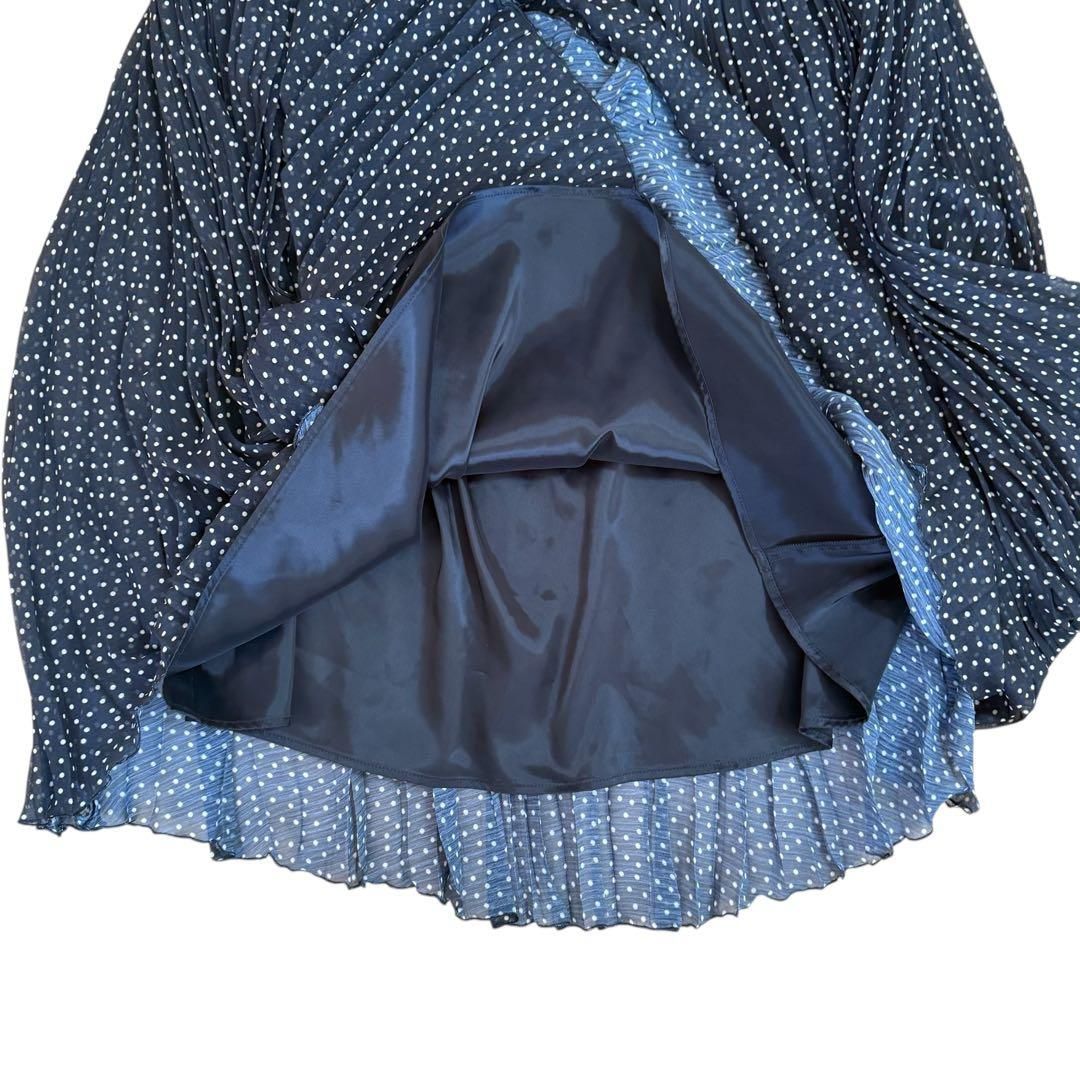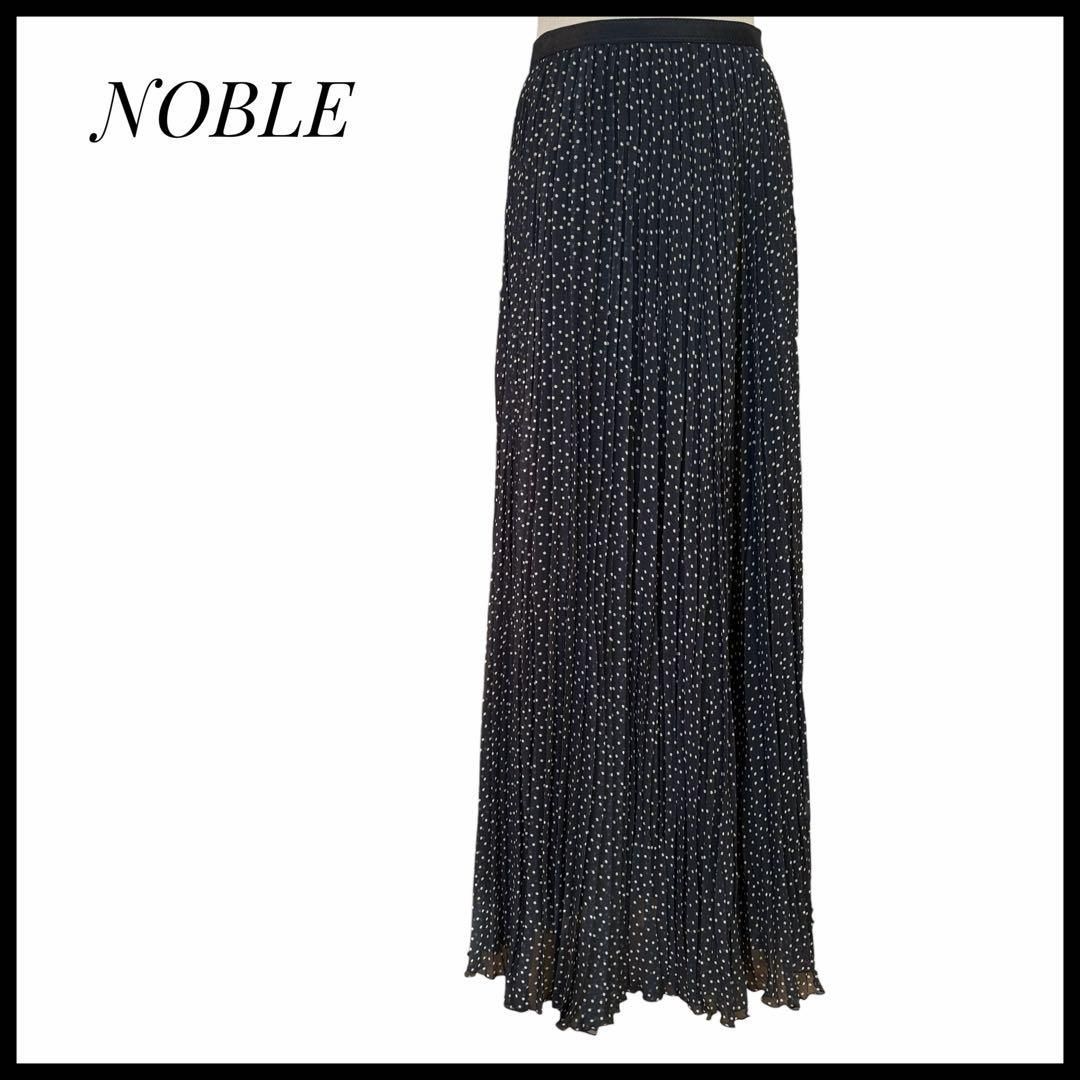 NOBLE ノーブル ドット柄 プリーツ ロングスカート ブラック ホワイト スカート レディース 女性 オールシーズン ウエストゴム