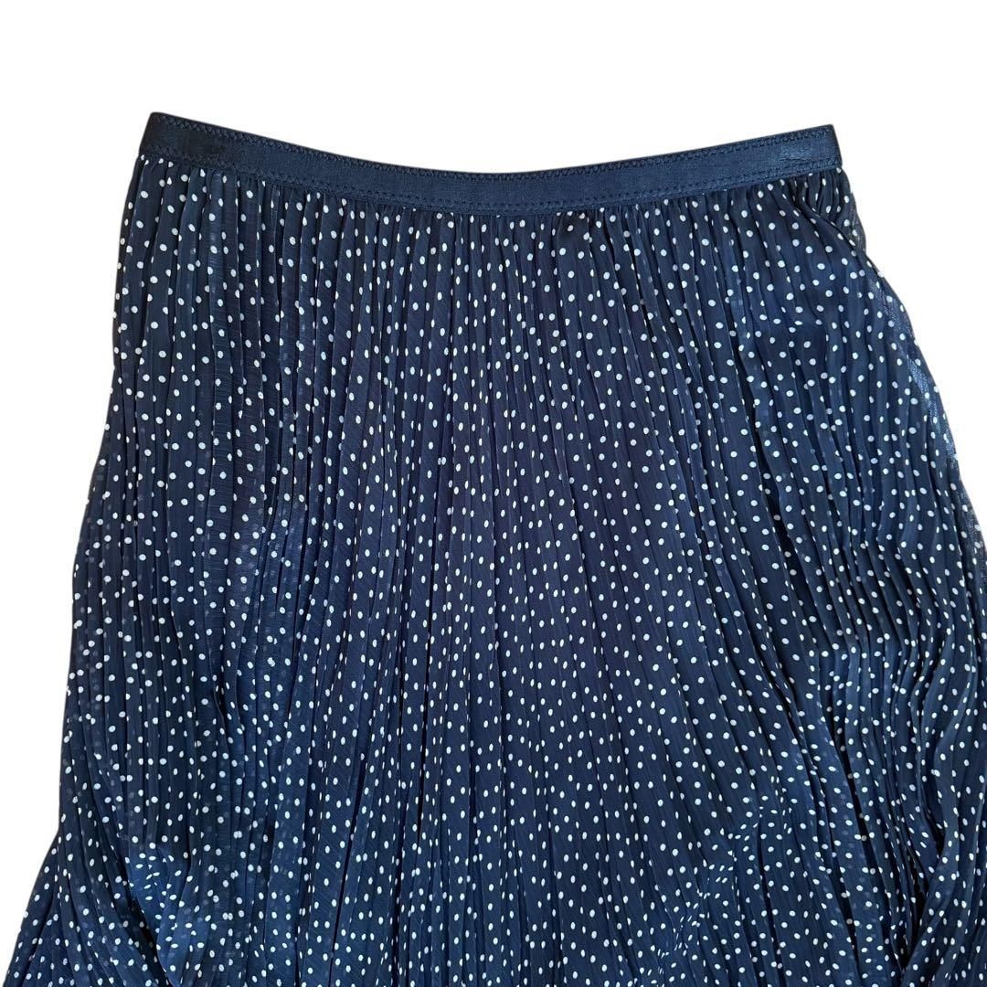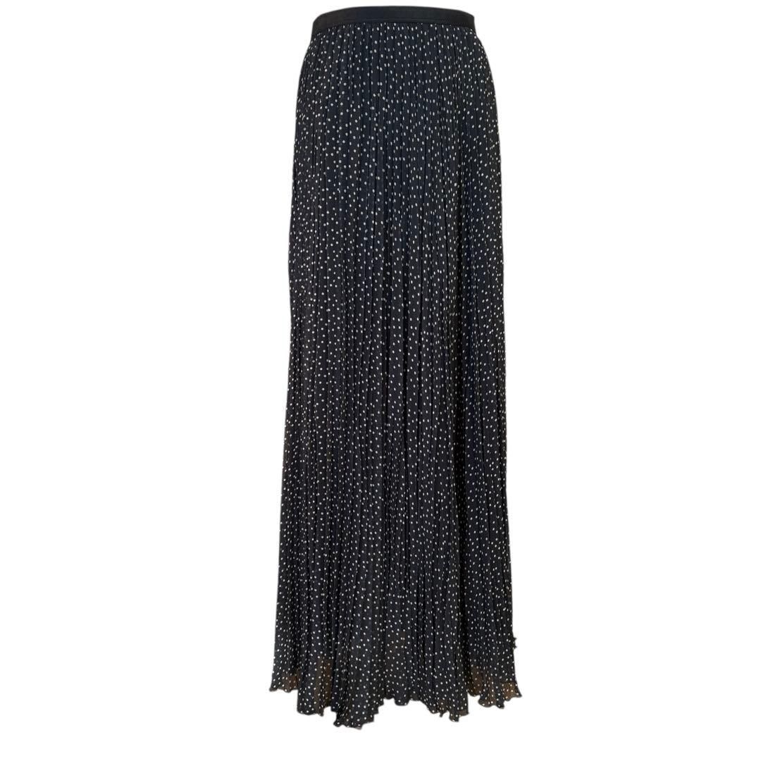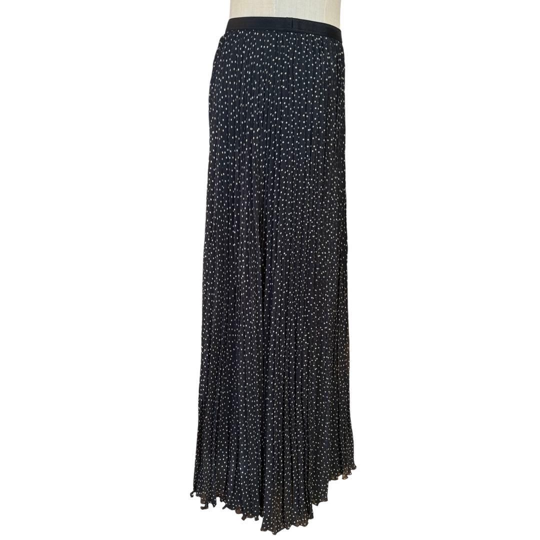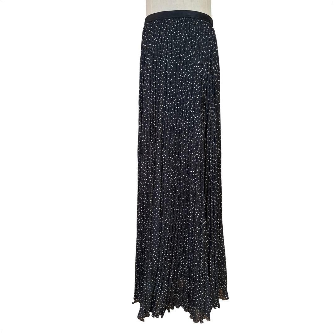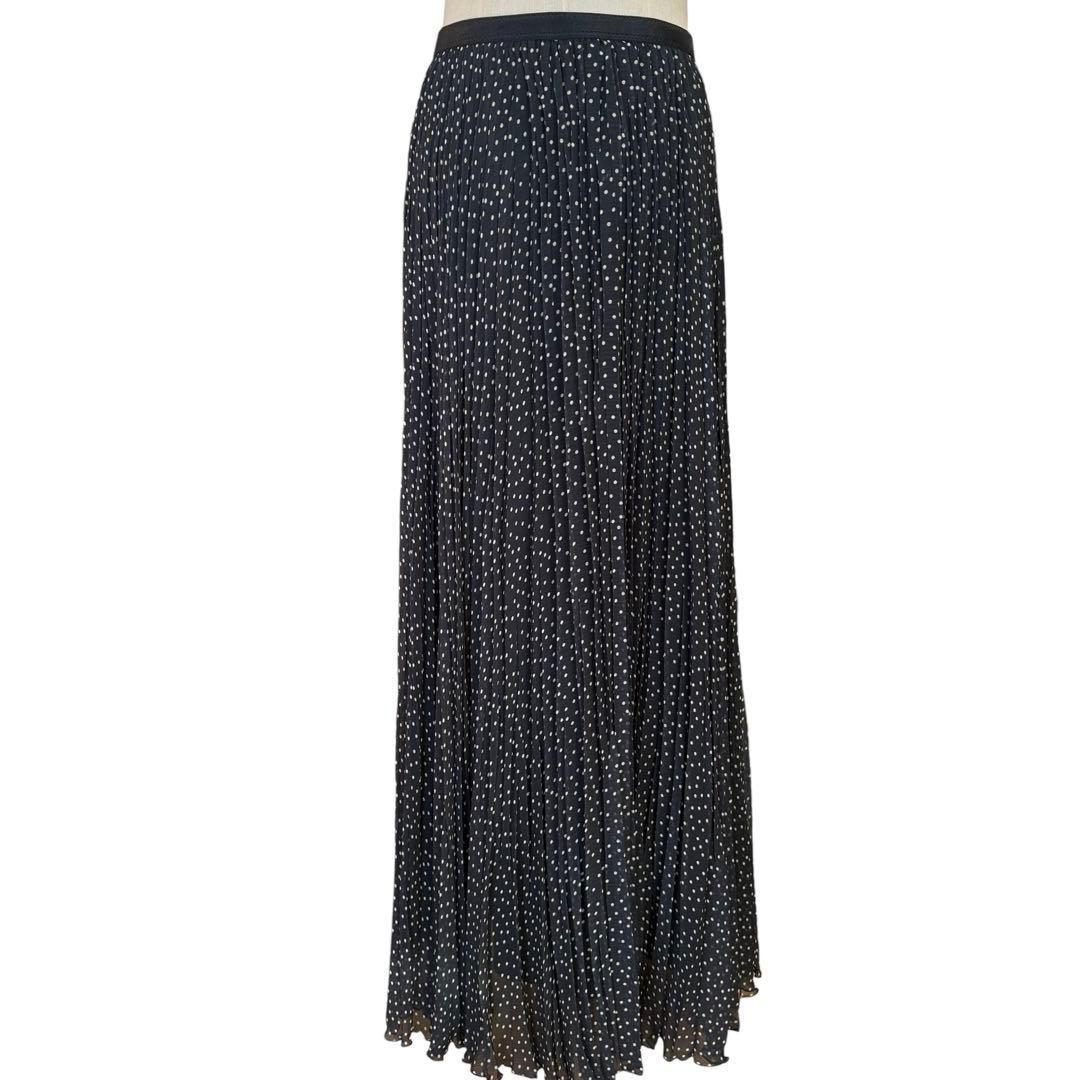 ブラックカラーのドット柄プリーツロングスカートです。