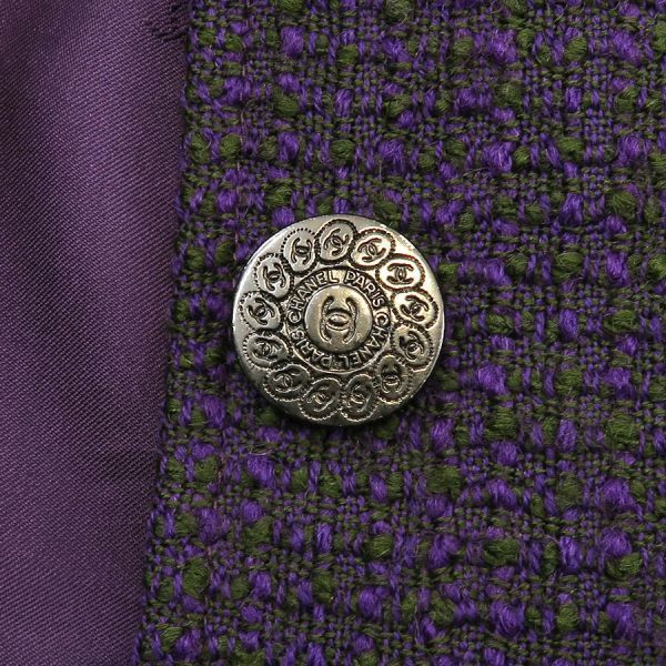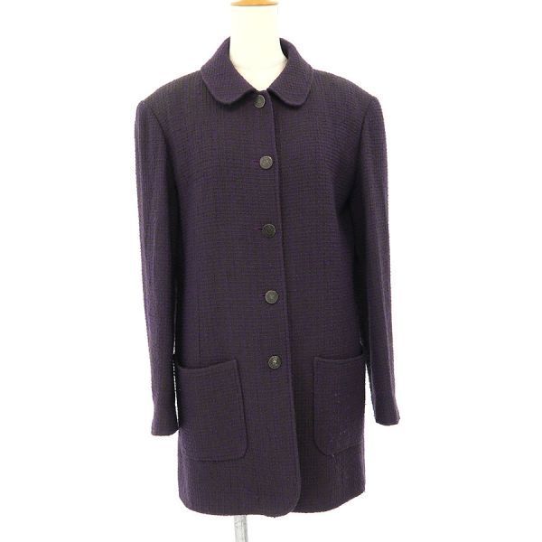 シャネルから97Aジャケットが入荷しました。ココマークボタンが素敵なツイードロングジャケットです☆状態は全体に起毛感・やや毛羽立ち、襟周りにスレ・破れ、両袖口裏にスレ汚れ、前身頃左に糸飛び等が見受けられますので、Cランクでのご紹介です。着用する分には問題ない程度となっております。