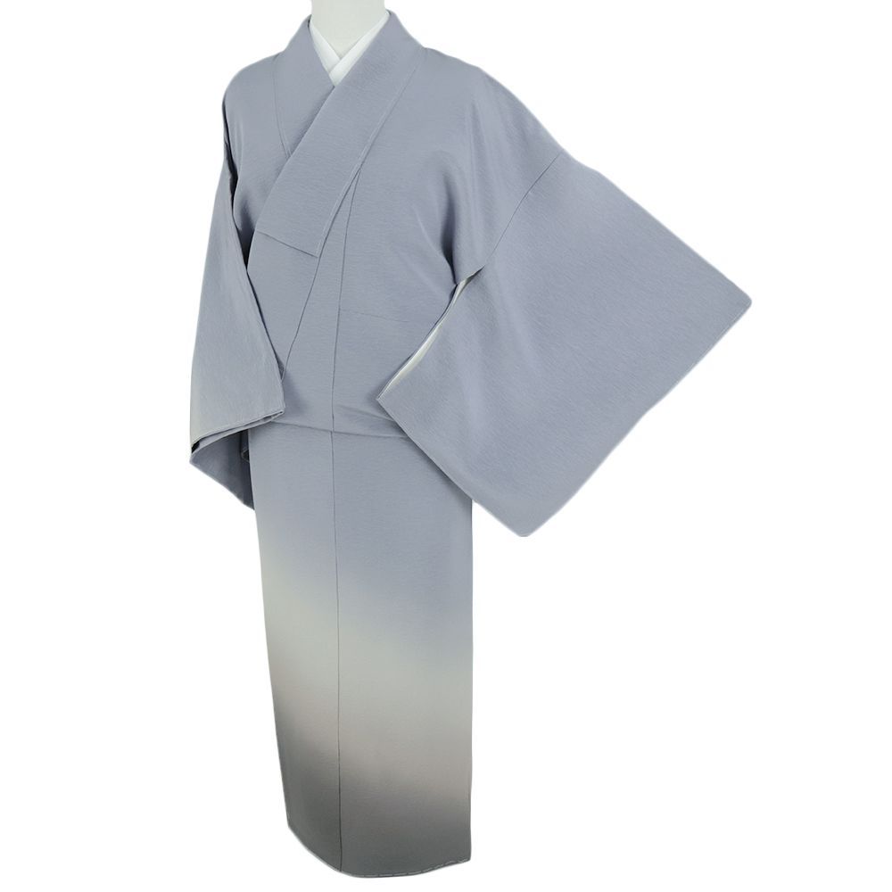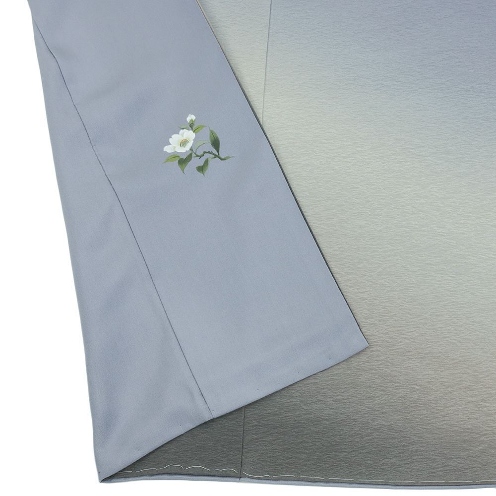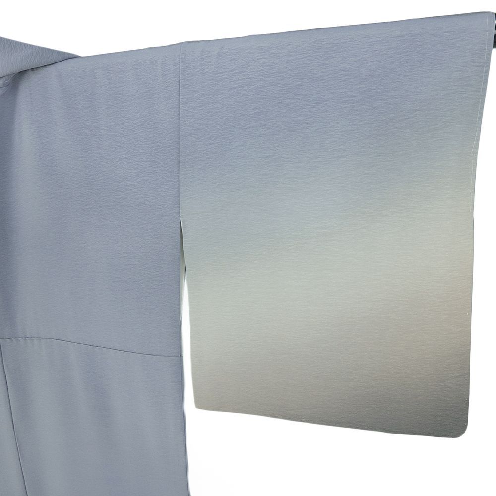 【 中古 】 訪問着 正絹 ブルーグレー ぼかし 着物 新古品 身丈172cm 裄68cm TLサイズ 大きいサイズ 希少 仕立て上がり リサイクル お洒落 ちりめん セミフォーマル 礼装用 卒業式 No.i3-0964